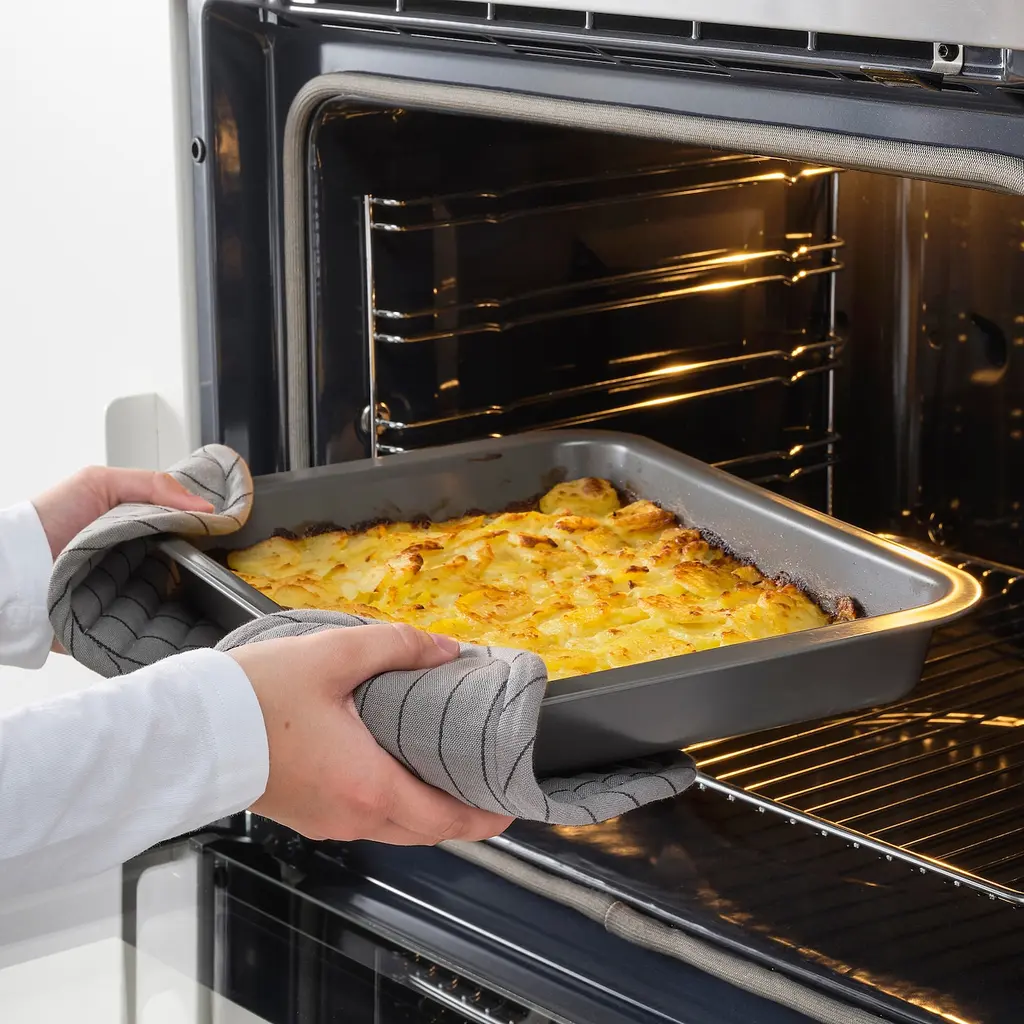 HEMMABAK Roasting pan - gray 14x11 ". This roasting tin is perfect for cooking lasagna, roasting a piece of meat or baking a sweet apple crumble. Made of durable steel with non-stick coating to make the food easy to loosen from the tin. Wash this product before using it for the first time.