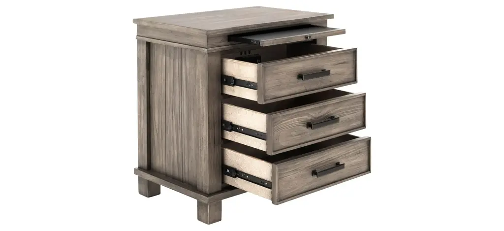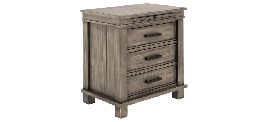 The Hempstead Nightstand brings together serene style and everyday function to create a space that feels just as good when you're awake as it does when you're sleeping. Its exposed wood grain and natural finish evoke a calm, casual vibe, while thoughtful details-- like a pullout tray, two built-in outlets, and dual USB ports--add modern-day convenience right where you need it.