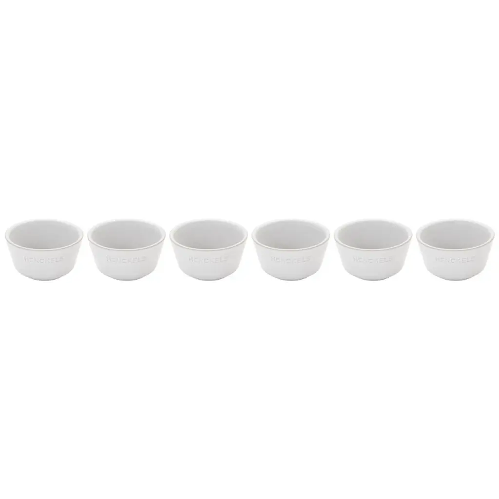 This handy set features 6 x 7-ounce ramekins ideal for holding prep ingredients, serving dips and treats, and baking off individual servings. Use the ramekins to organize yourself by portioning out recipe ingredients before you start cooking. Scoop guac and salsa into these ramekins to offer with a big bowl of chips. Or serve personal portions of mac and cheese and corn bread to your dinner guests.These handmade stoneware pieces are highly resistant to thermal shock, gently retain heat, and are incredibly moisture resistant, offering remarkable durability. Thanks to their beautiful highly scratch-resistant vitreous glaze, you can take them straight to the table for a beautiful presentation. And when the meal is over, they stack neatly and safely for compact storage. Oven safe to 572°F, these versatile ramekins are also microwave, dishwasher, and freezer safe.HENCKELS is committed to sustainability. The unique firing process used to make HENCKELS ceramics results in an eco-friendly, energy saving production.