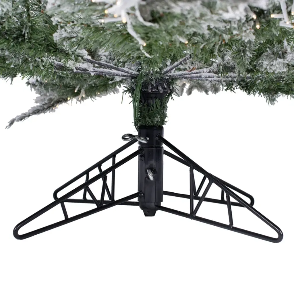 Bring the joy of the holidays home with our artificial Christmas tree. Made with lush PVC foliage and a sturdy iron frame, this full-shaped tree is beautifully flocked for a frosted effect. It comes pre-lit with steady, stay-lit bulbs and includes extra bulbs and fuses. The metal stand ensures stability while the electric plug-in power source makes setup a breeze. Get ready to spread holiday cheer with this stunning fir tree.