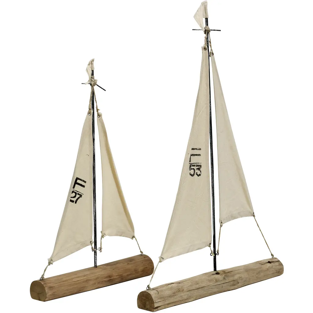 Bring a touch of nautical charm and whimsy to an interior with this set of two sail boats. These charming figurines are made out of the same materials as the real thing: wood and metal, with painted canvas sails. They are the ideal way to bring a coastal feel to any mantel, tabletop or bookcase.Features:DUE TO THE PRODUCTION PROCESS, EACH PIECE IS UNIQUE AND NO TWO ARE EXACTLY ALIKEPAINTED CANVAS SAILSNATURAL WOODDECORATIVE USE ONLYDue to lighting and monitor differences, actual colors and finishes may vary slightly from what appears online.