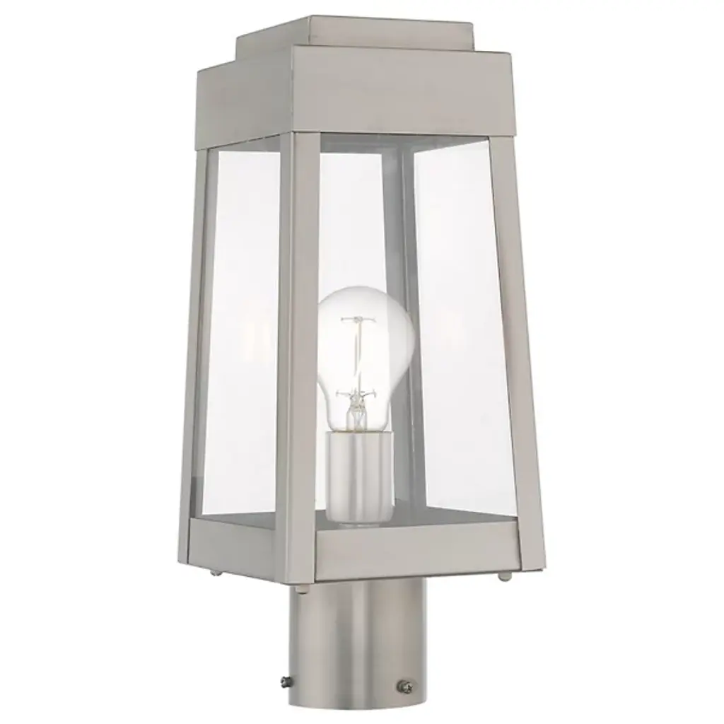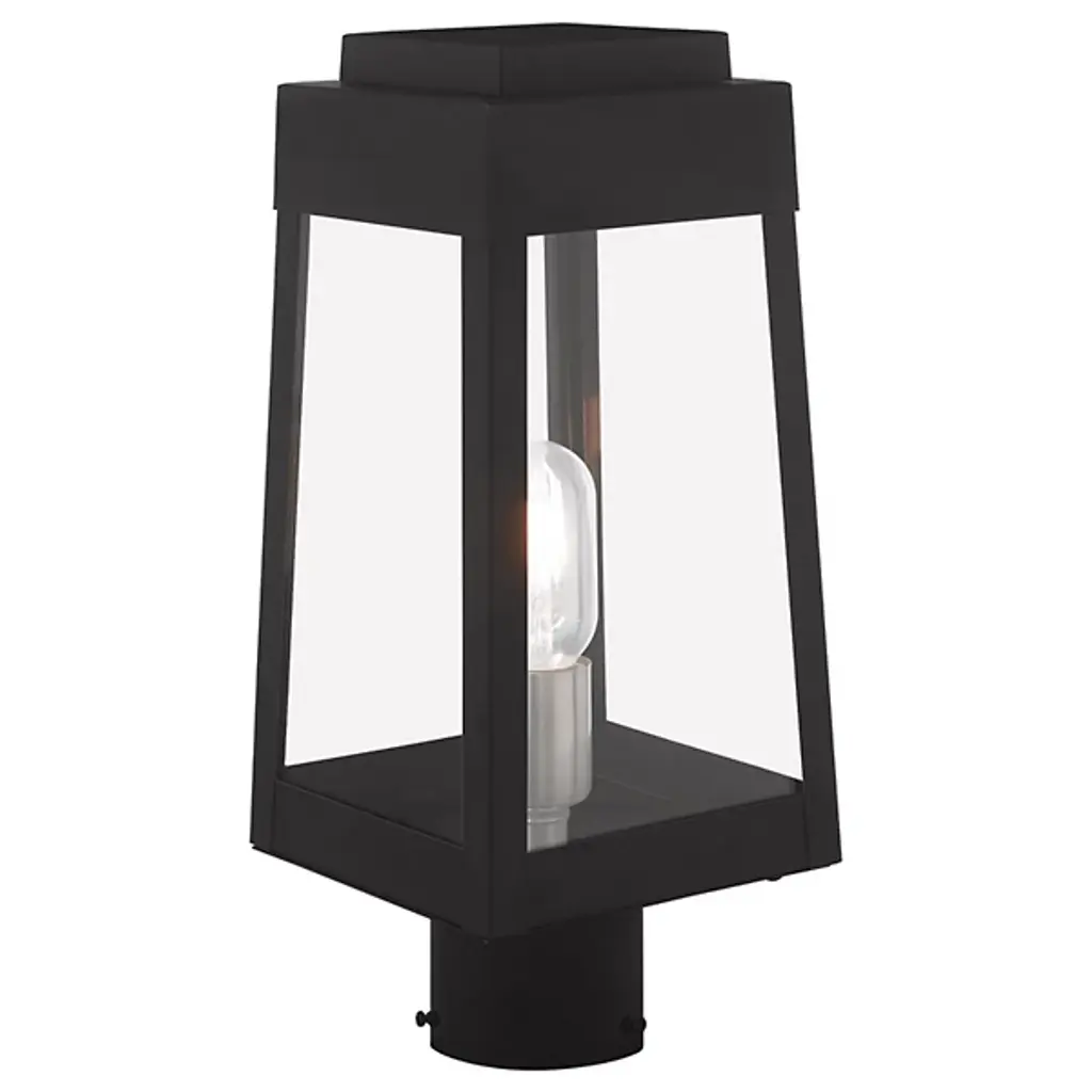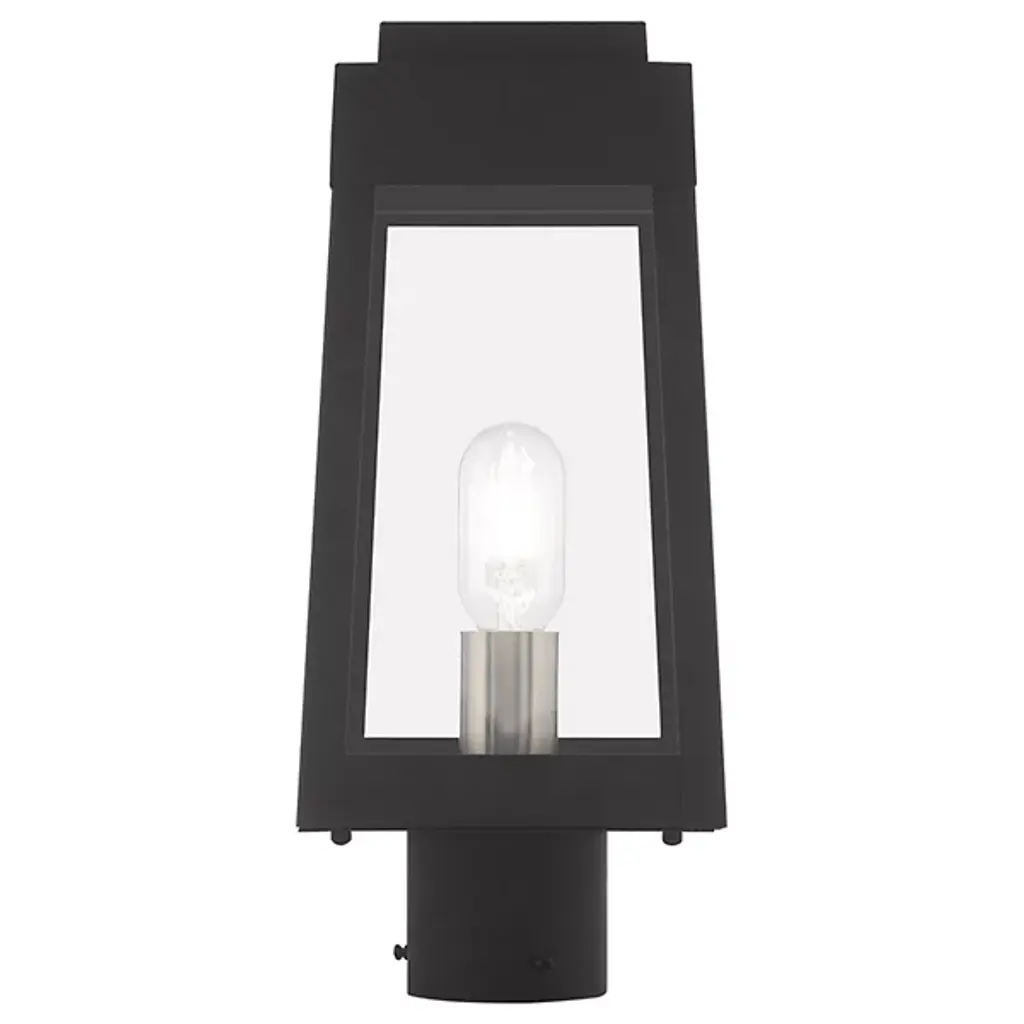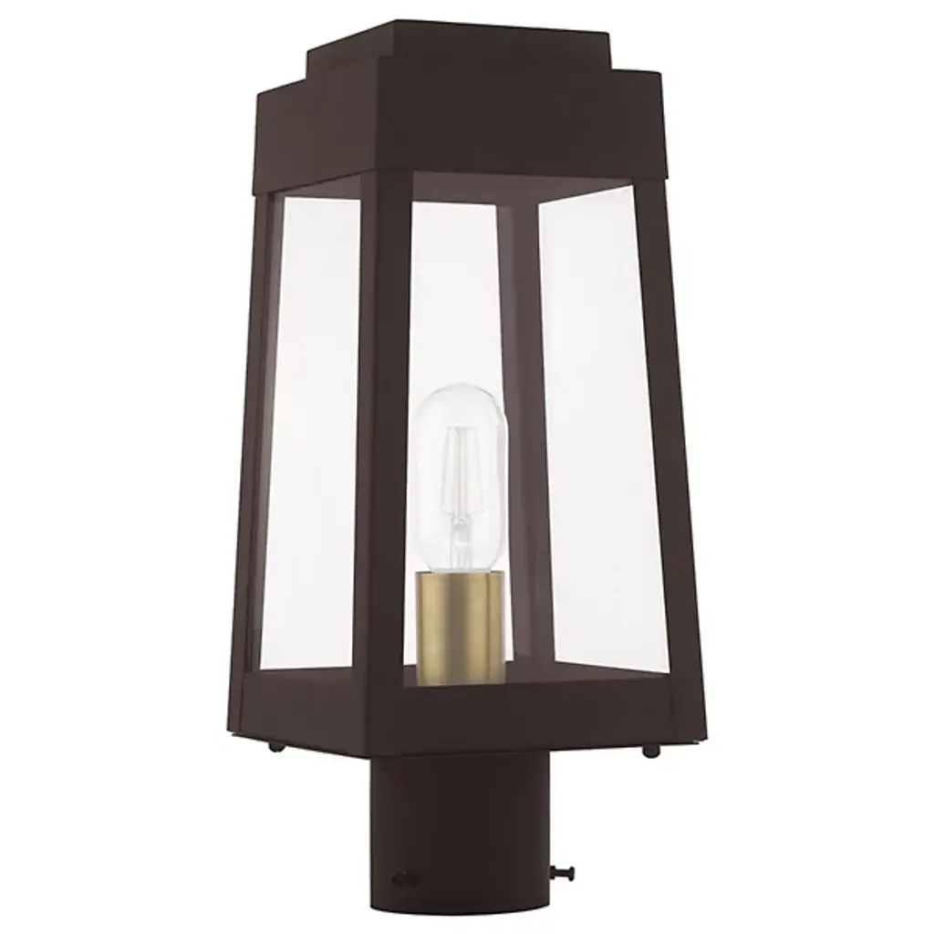 A sharp contemporary take on the familiar lantern silhouette. The Henry Outdoor Post Light from Alder & Ore provides an inviting visual through its clean shapes and beaming aura. The post light’s crisp edges call back to the architectural features of the modern and contemporary home. Metalsmiths craft the structure by hand with great attention to detail. The structure features a familiar tapered form with a stepped hood accent. Glass panels help protect the bulbs while adding an elegant reflective note. The piece turns on to create a bright, eye-catching beacon.