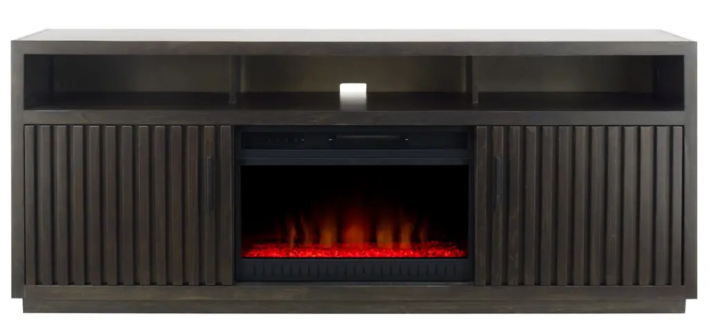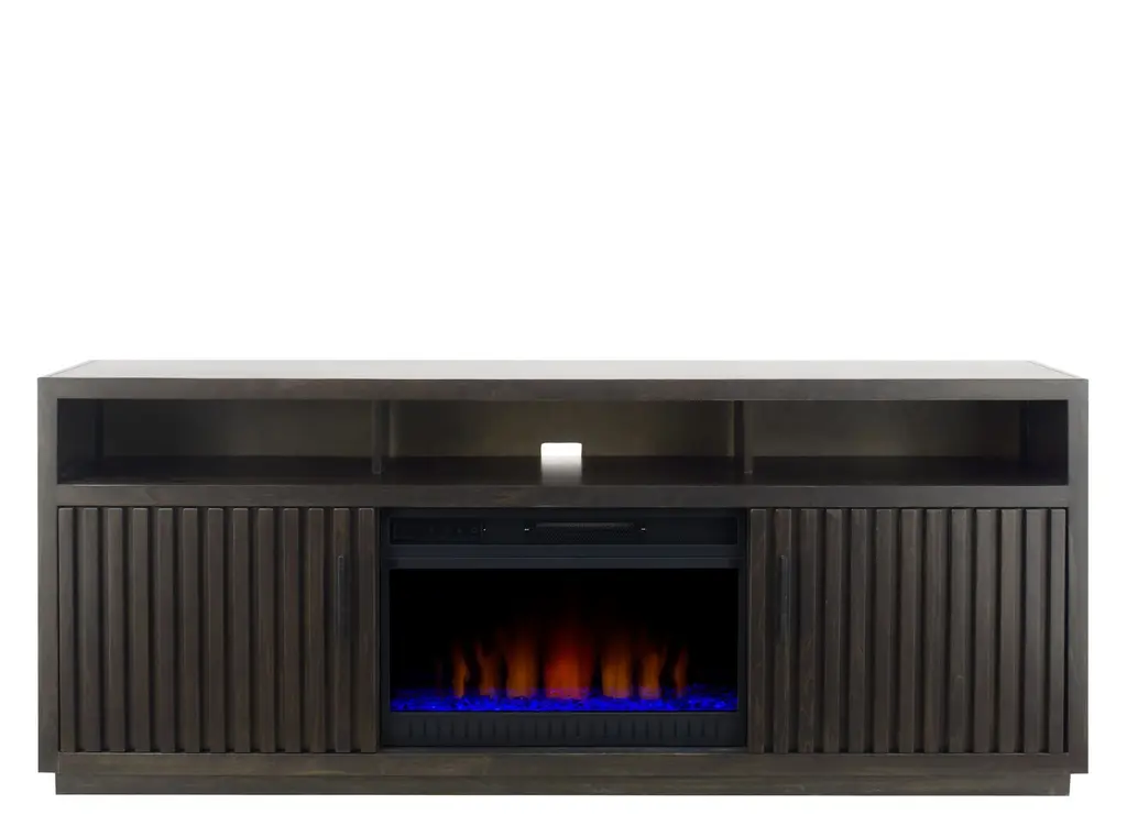 Maximum coziness is at the push of a button with the Henty 74" TV console with fireplace. Three adjustable shelves offer handy storage while the fireplace creates a comfortable ambiance you deserve. The included remote adjusts power, flame color and temperature, and the timer. So kick back, heat up, and enjoy yourself!