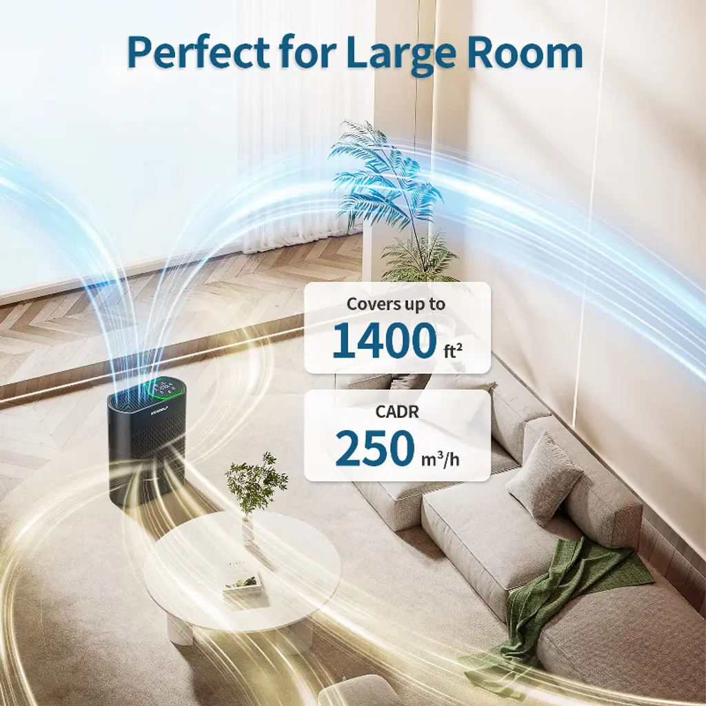 Hepa Air Purifiers For Home Large Room Cover 2400 Ft2 With Air Quality Monitor 20db Sleep Mode,6 Settings
