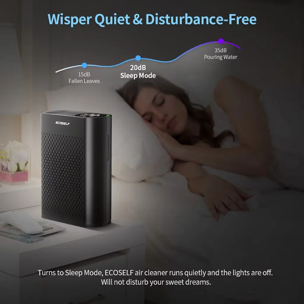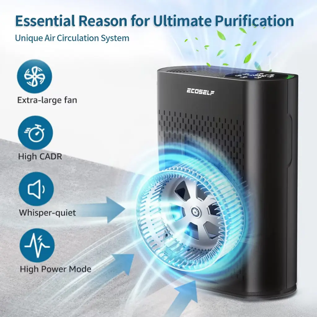 Hepa Air Purifiers For Home Large Room Cover 2400 Ft2 With Air Quality Monitor 20db Sleep Mode,6 Settings,black