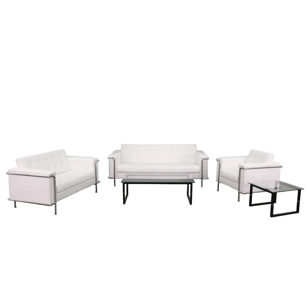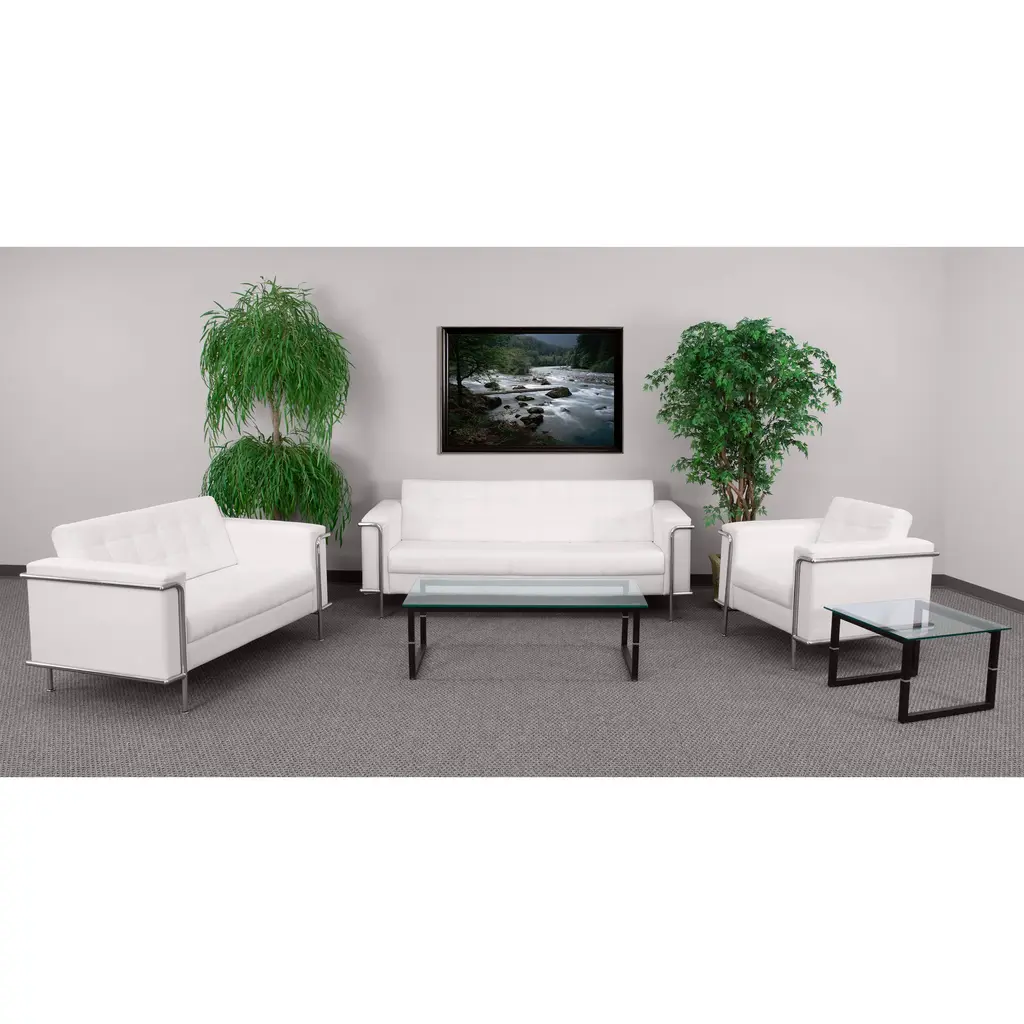 This reception set will make a lasting impression with your visitors and makes an ideal choice in the office and as waiting room seating. The contemporary design of this furniture adapts in several different settings. For unparalleled comfort, these chairs have foam filled cushions that are upholstered in LeatherSoft for sink-in softness. Built with integrated stainless steel legs, these chairs are stable and can carry heavy loads. Not only will this set fit in a professional environment, but will add a modern look to your home.