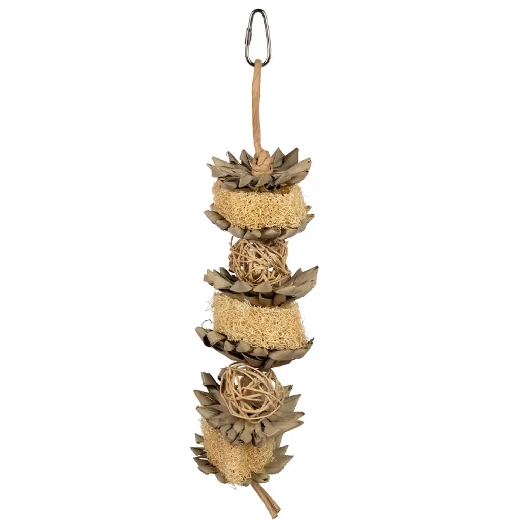The Heritage Farms Bird Nesting Holder is a natural nesting aid designed to attract a variety of bird species. It features a refillable wire mesh container filled with all-natural fibers and is equipped with a synthetic manila rope hanger that resists rot. The holder mimics a real bird nest, encouraging birds to build their nests inside. Its compact size makes it suitable for placement in various outdoor locations