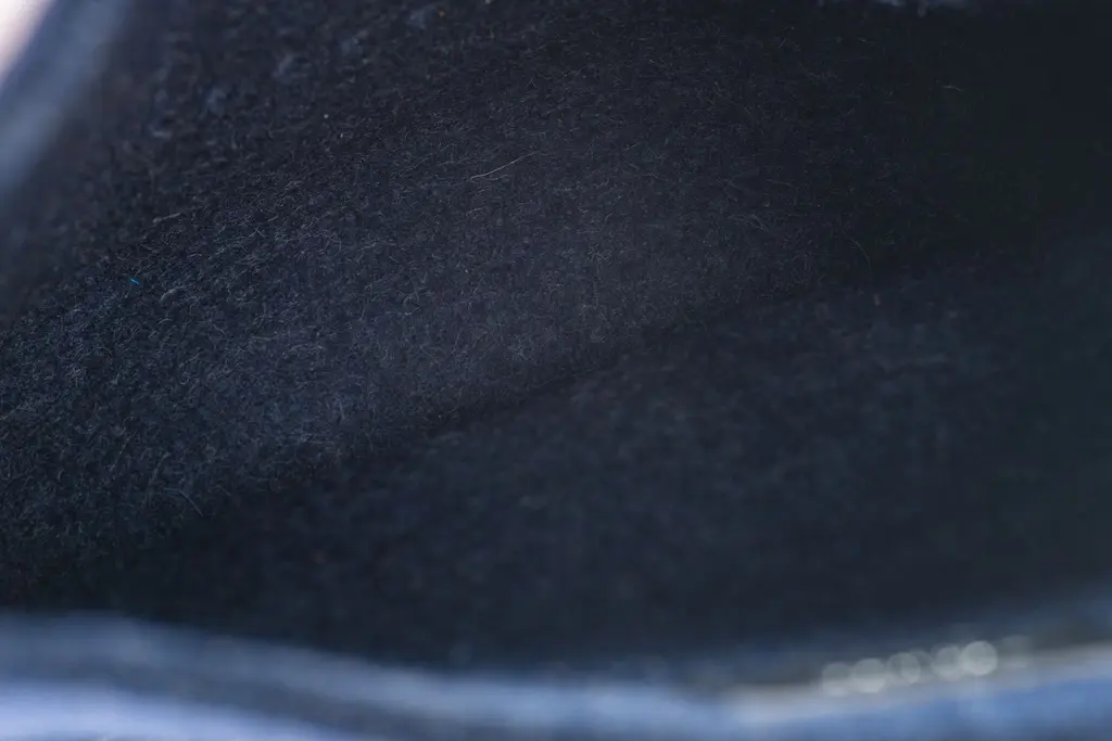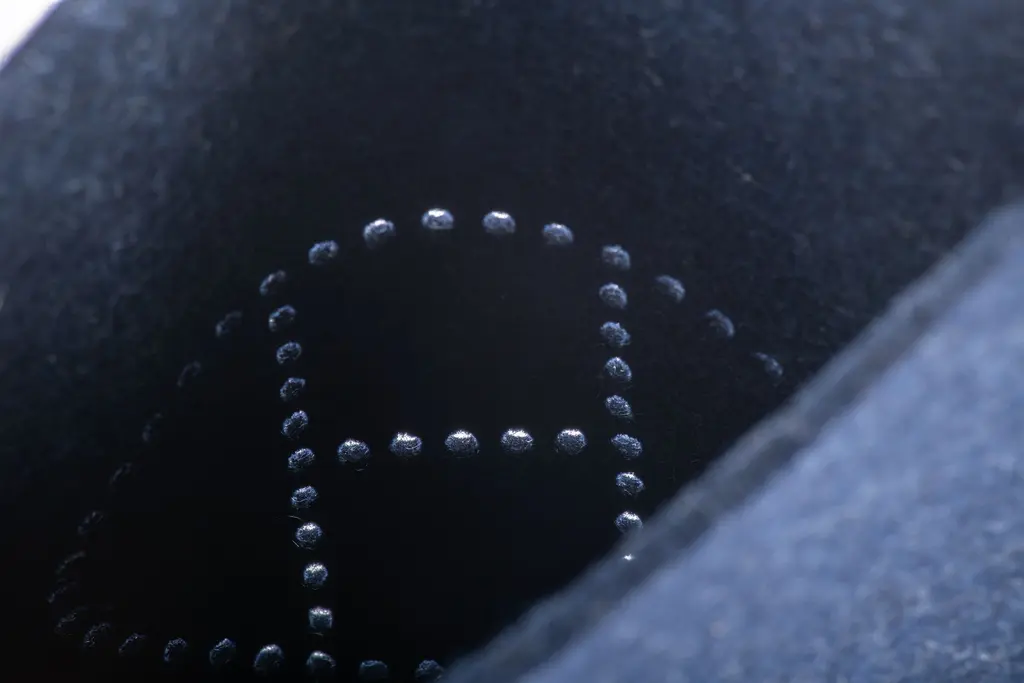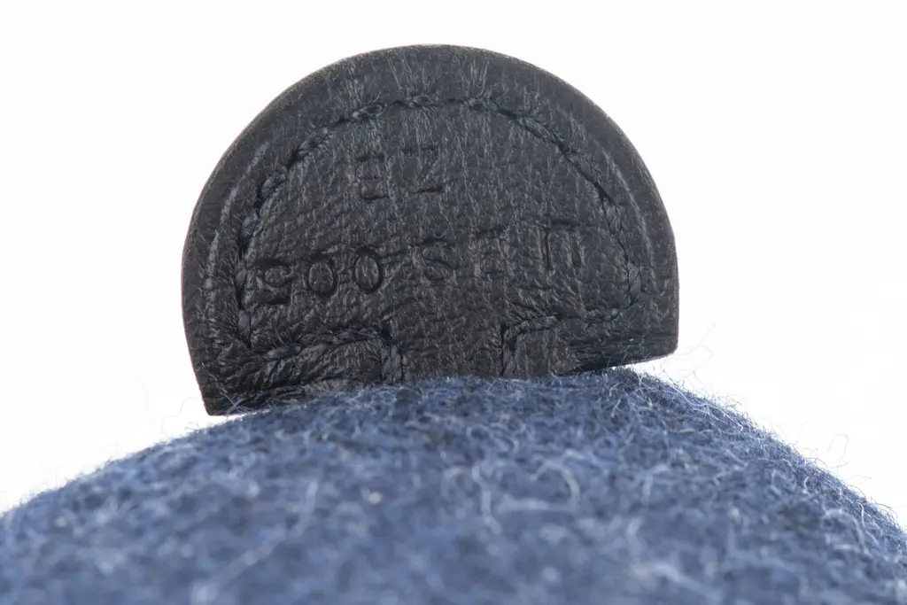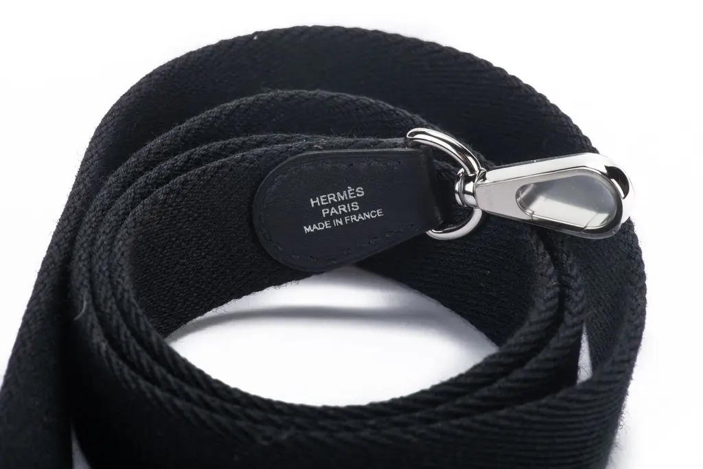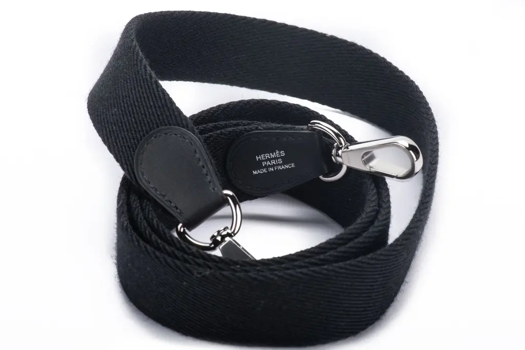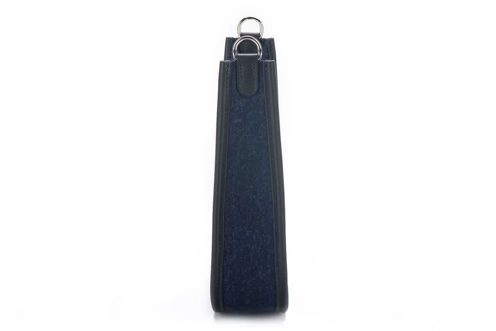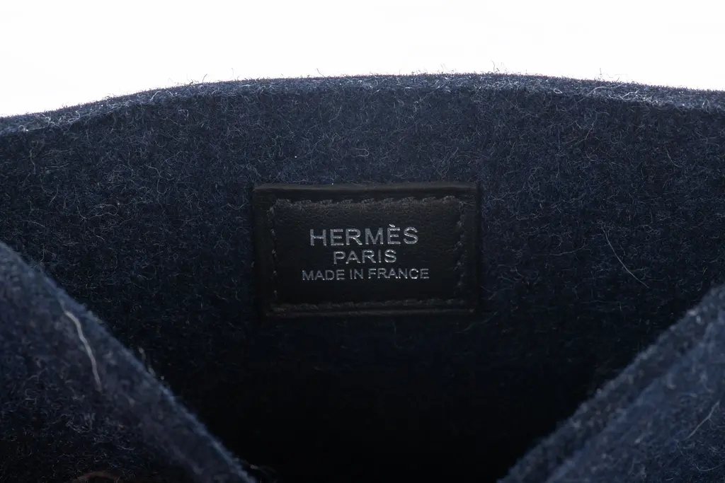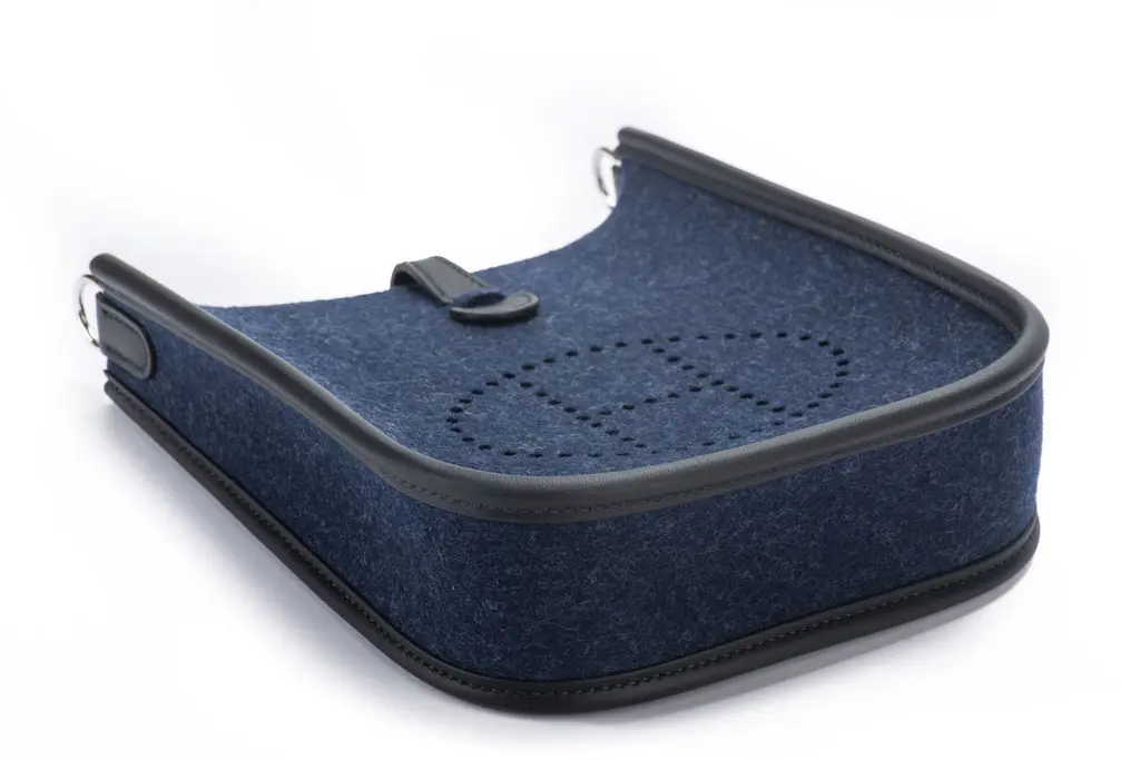 Hermès rare mini Evelyne shoulder bag in blue felt, black swift leather with palladium hardware. Never used. Dated "U" for 2022. Shoulder drop, 22"L. Comes with original duster, box, ribbon.