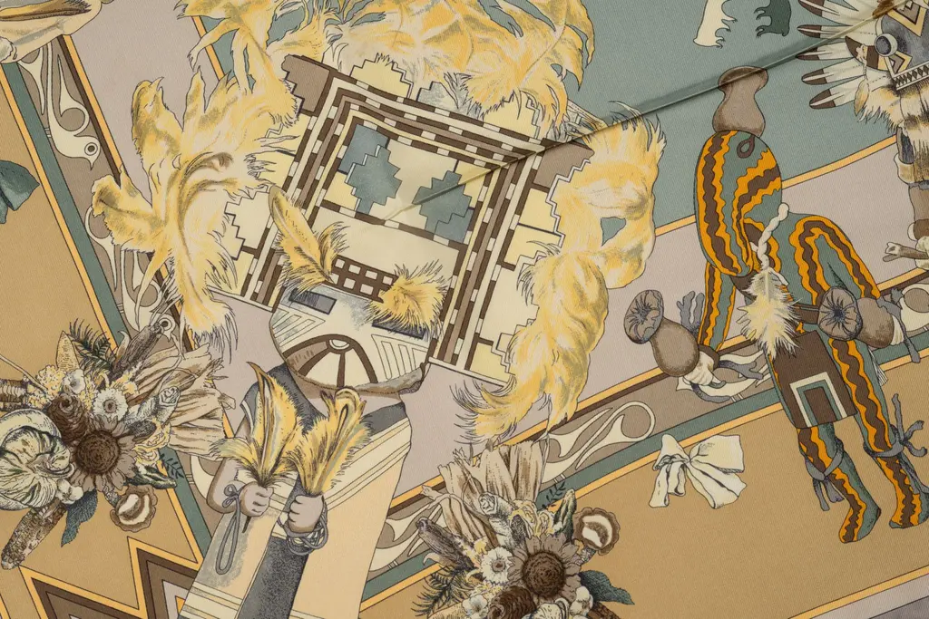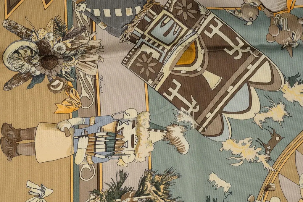 Hermès "Kachinas" Beige Silk Scarf