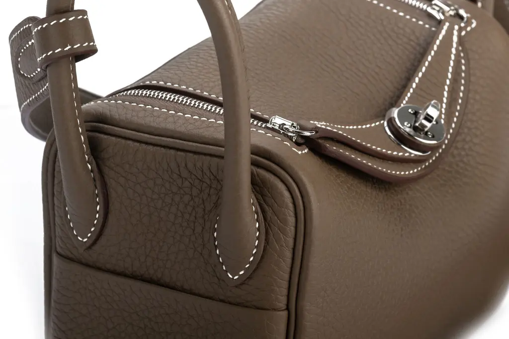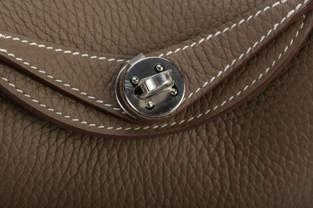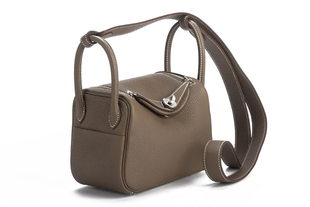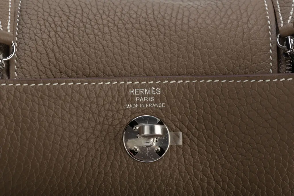 Hermes brand new in box mini lindy etoupe togo leather with palladium hardware. Date stamp Z, 2021. Coveted new size , can be worn in three ways, also cross body. Two interior pockets. Comes with dust cover and original box.
