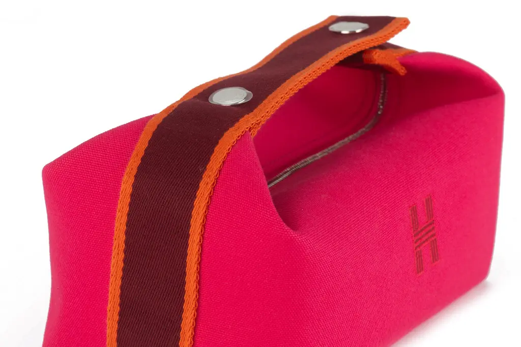 Hermès Bride-a-Brac Case in small features 100% cotton, lining in herringbone canvas, strap in polycotton, embroidered "H" motif, and three interior pockets. Includes a handle for hanging that closes in multiple ways. Brand new . Made in France.