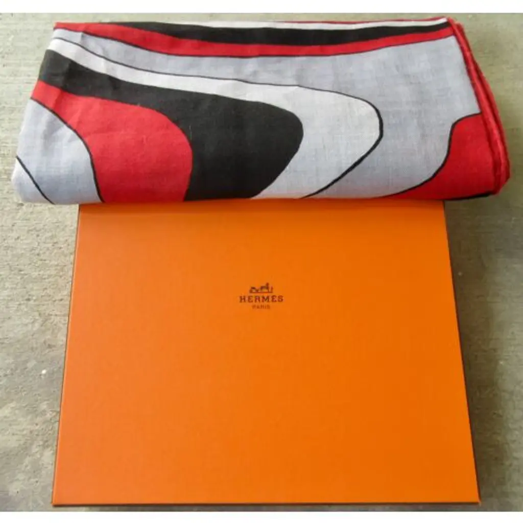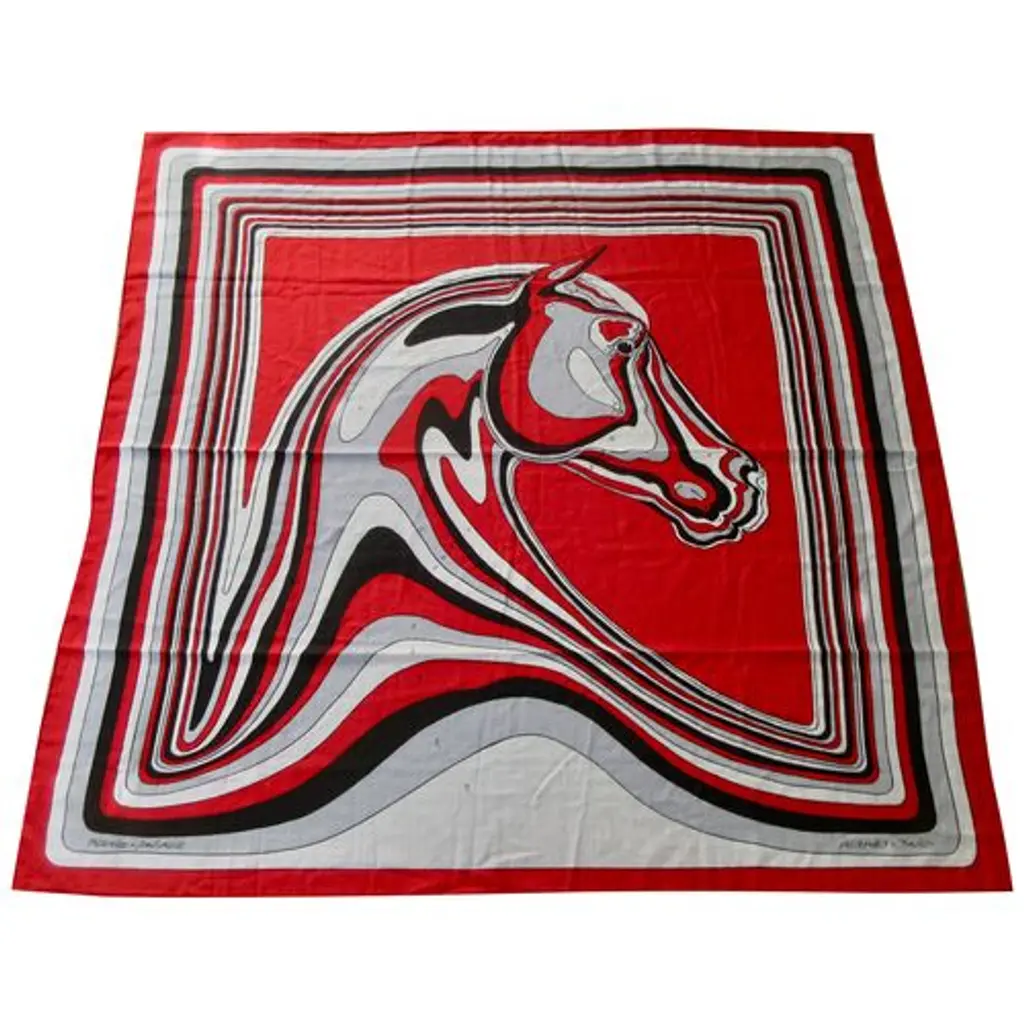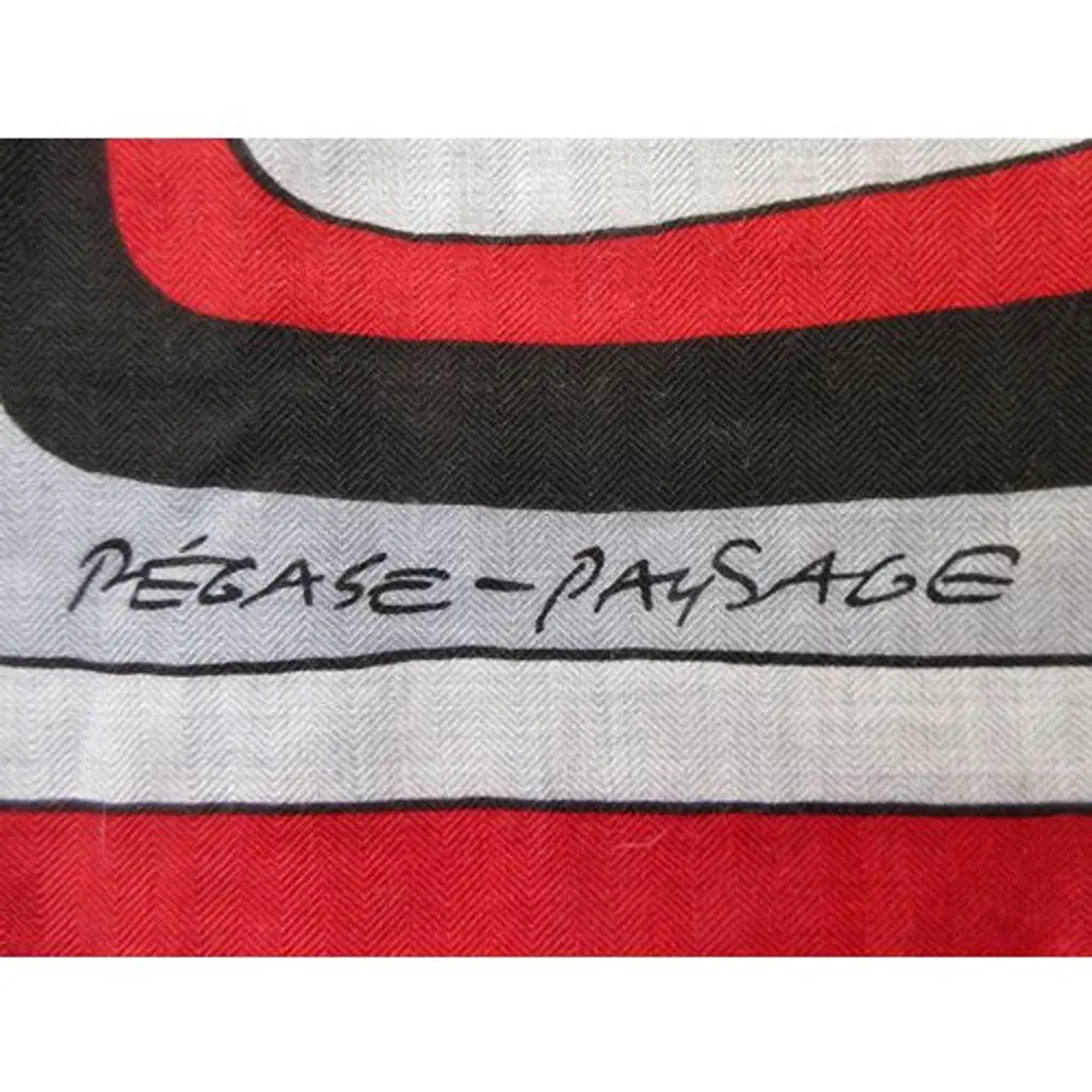 Hermès Pegase-Paysage cashmere/silk shawl features the head of a horse in profile, in an undulating, almost liquid form. Look at it again, this time from a bird's-eye view, and you may see the design as a landscape formed by the lines of the horse, an equine landscape. Bold red, gray, black and white colorway. Designed by Christian Renonciat in 2022. Care tag attached. Presented in an orange Hermes box.