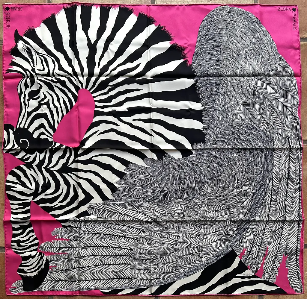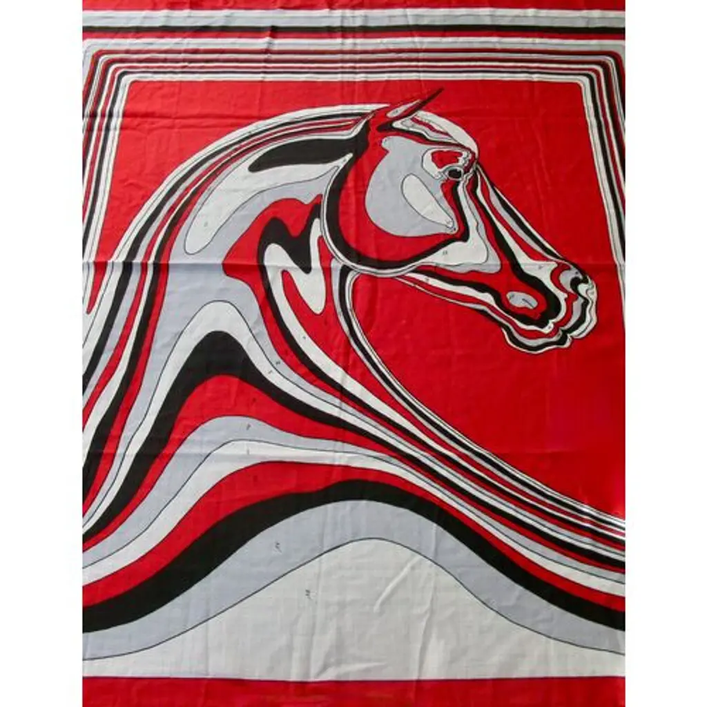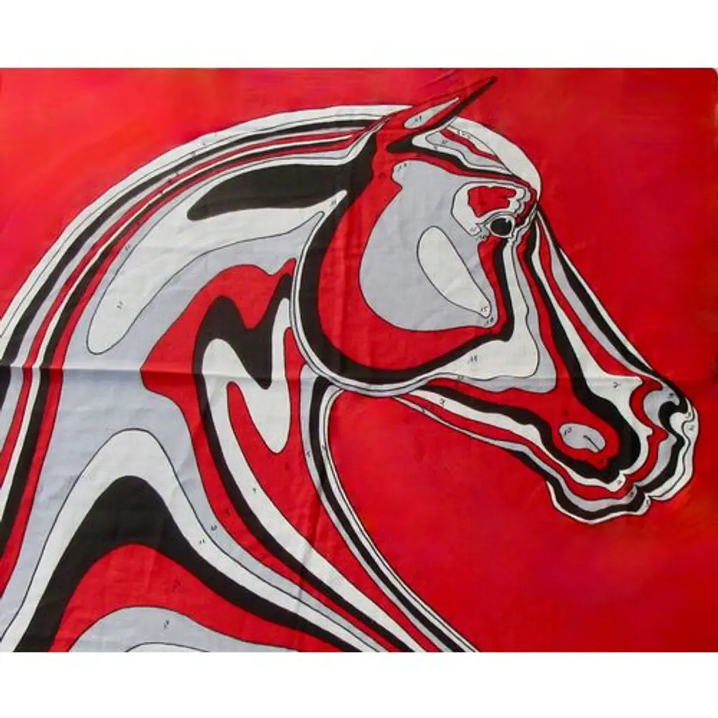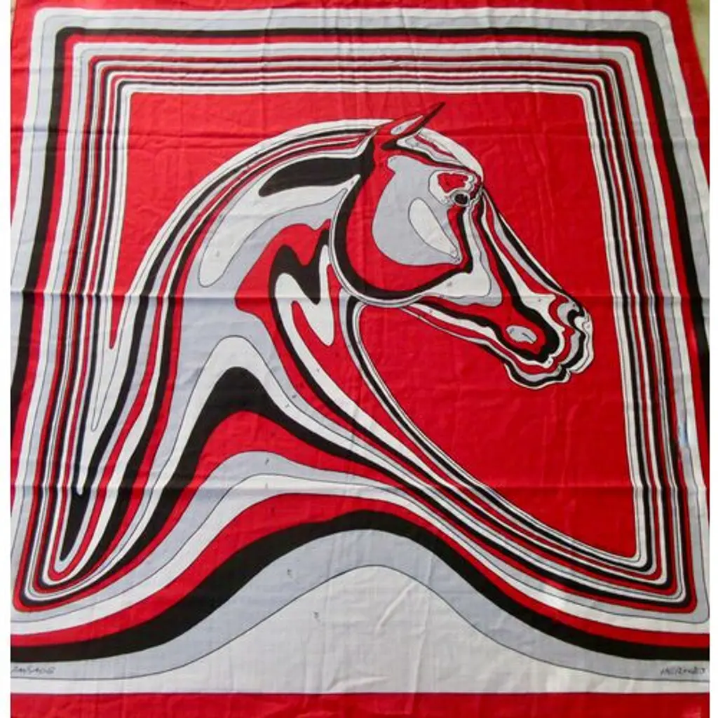 Hermès Pegase-Paysage cashmere/silk shawl features the head of a horse in profile, in an undulating, almost liquid form. Look at it again, this time from a bird's-eye view, and you may see the design as a landscape formed by the lines of the horse, an equine landscape. Bold red, gray, black and white colorway. Designed by Christian Renonciat in 2022. Care tag attached. Presented in an orange Hermes box.