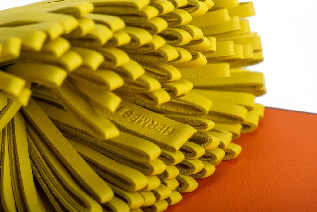 Herm����s lime yellow leather Carmen tassel keychain. Brand new with original box, ribbon.