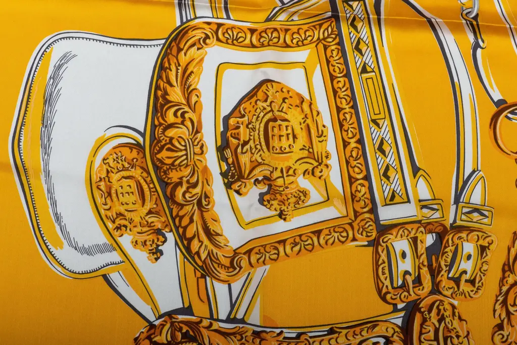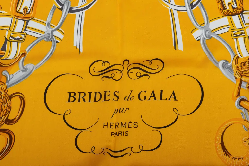 Hermès Brides de Gala orange and yellow silk shawl. Hand-rolled edges. Box not included.