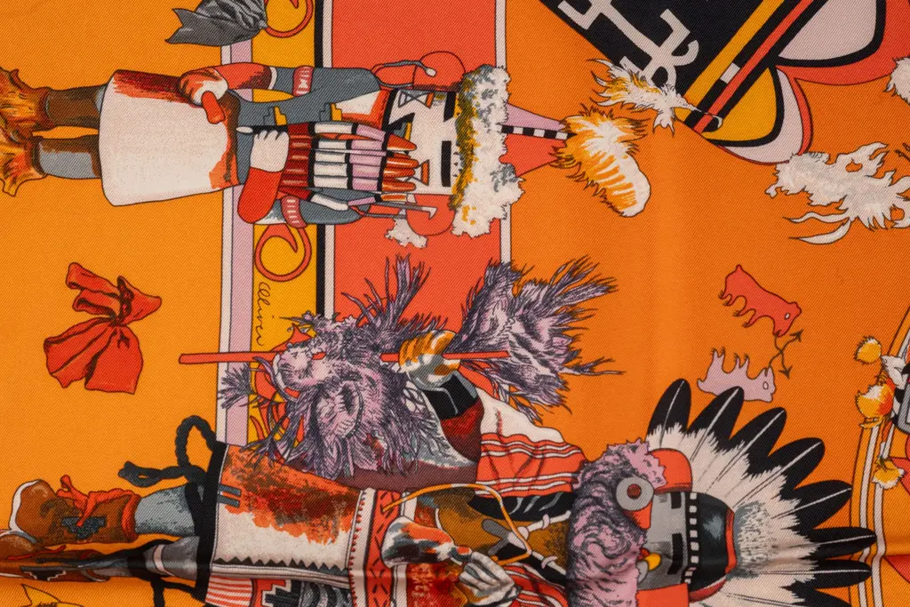 Herm����s Orange "Kachinas" Silk Scarf