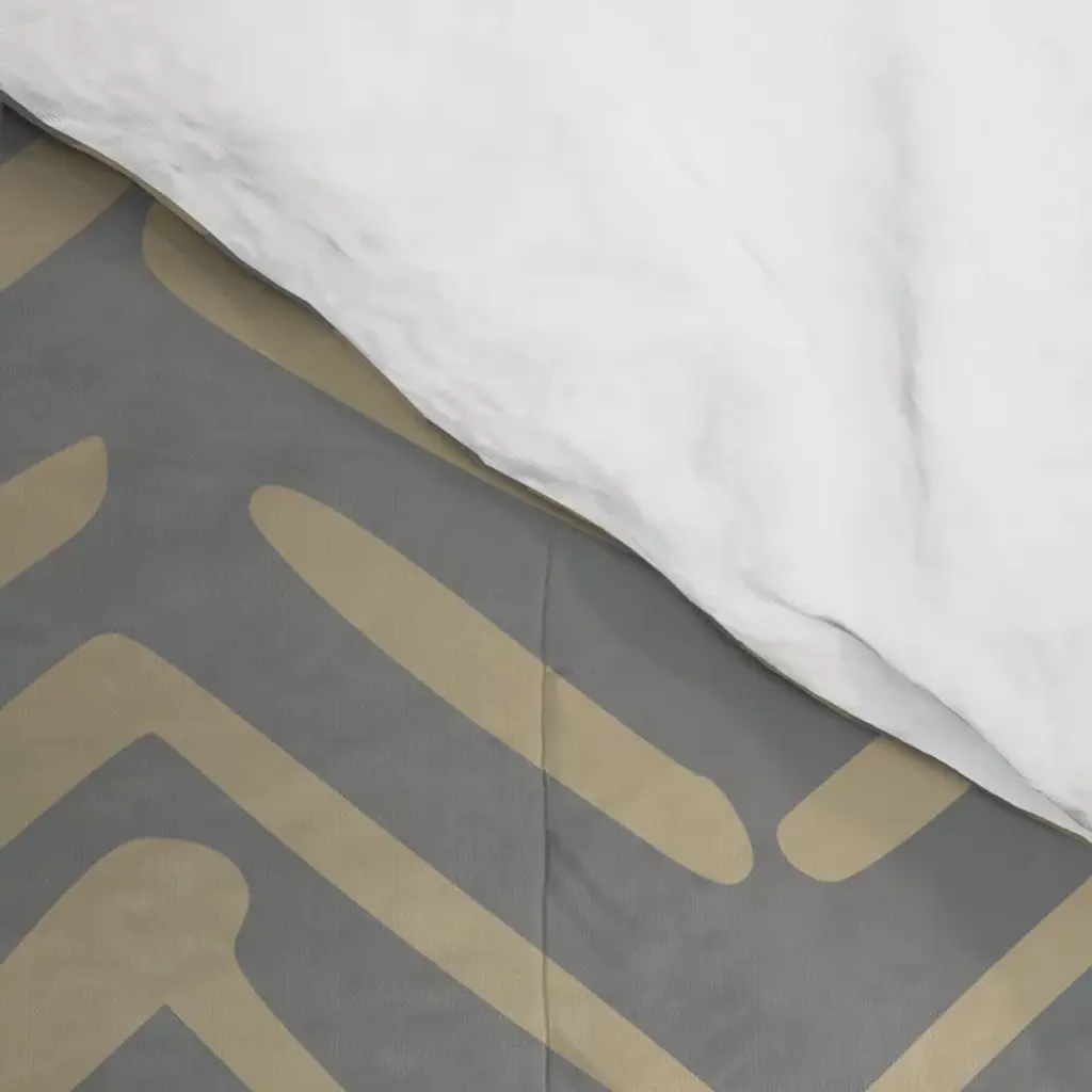 Herringbone, Boho, Mudcloth Pattern, Grey And Gold Comforter