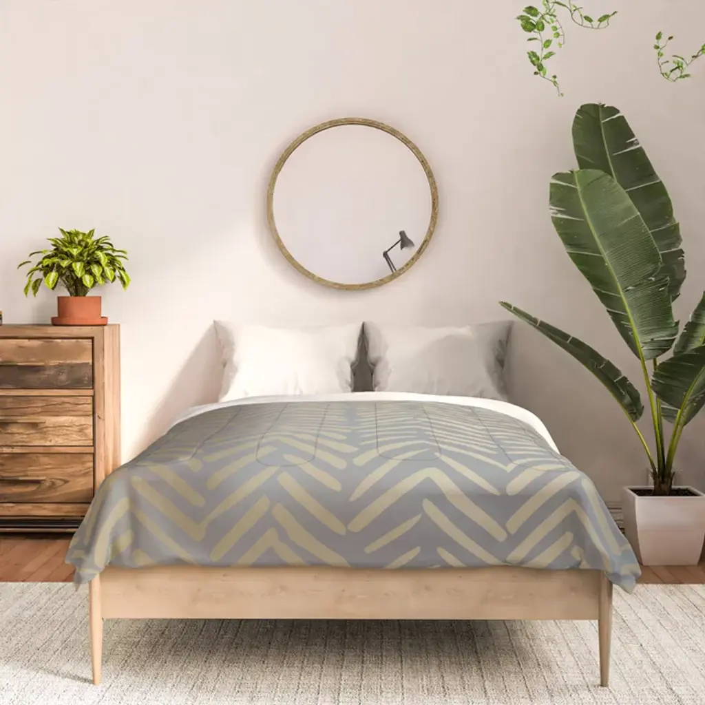 Herringbone, Boho, Mudcloth Pattern, Grey And Gold Comforter