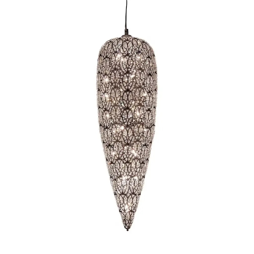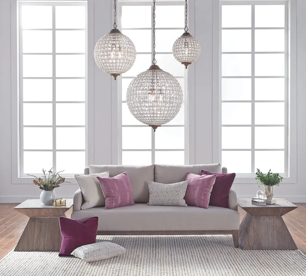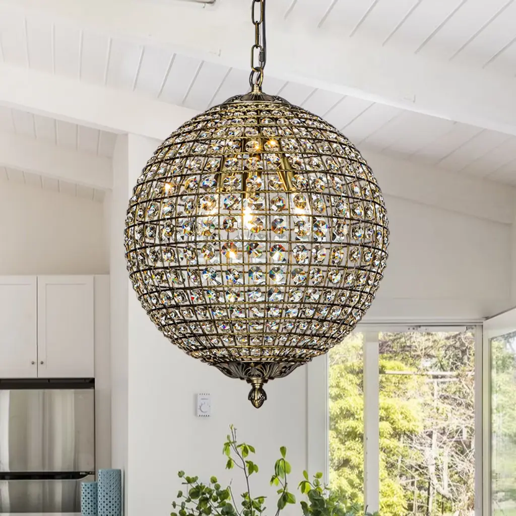 Sparkling with cut crystals and accented in delicate rose gold, this chandelier drips with old world glamour. Housed within a meticulously handcrafted sphere of recycled iron, it adds romance to bedrooms, foyers, and living rooms alike.