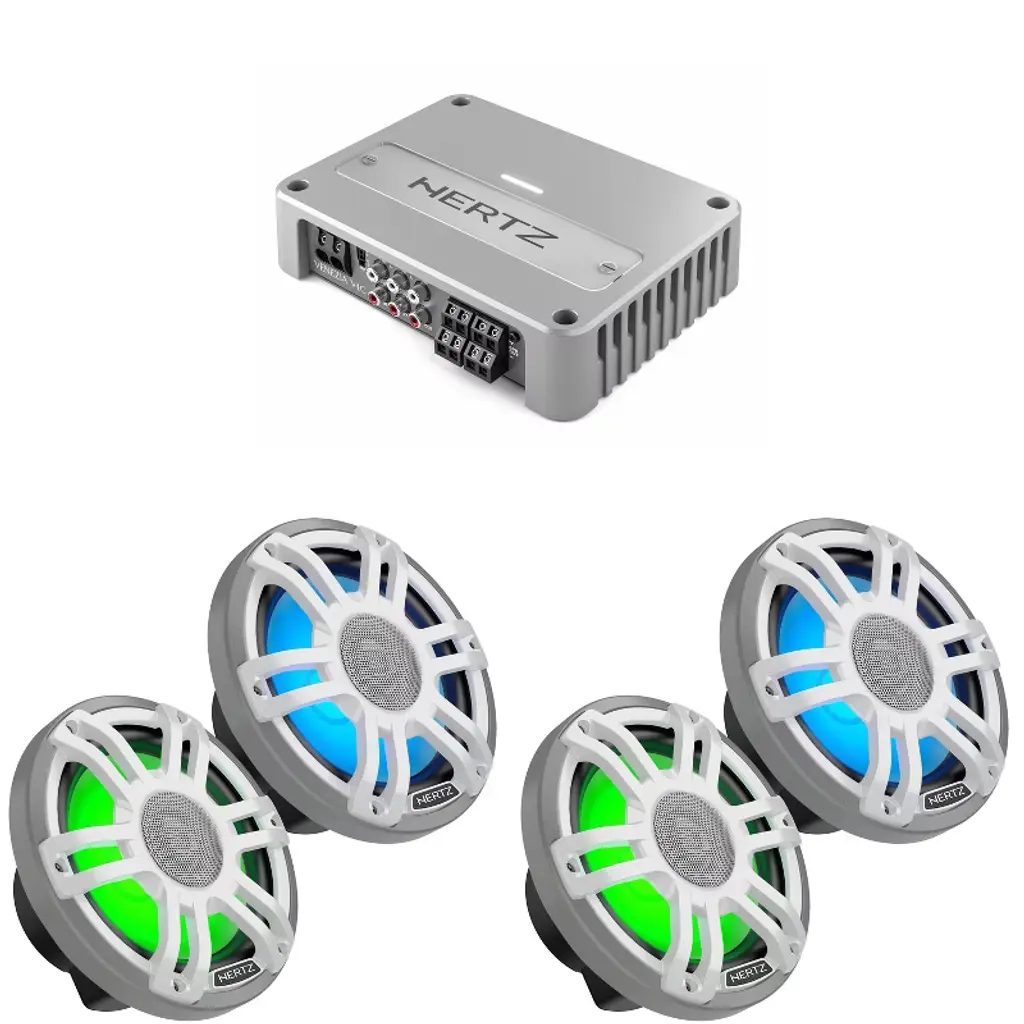 Hertz 3 Pair Hmx 7.7 S-ld-sw – 7.7" Hi-end Led Marine Coaxial Speaker With Venezia V6 - 6-channel Marine Amplifier