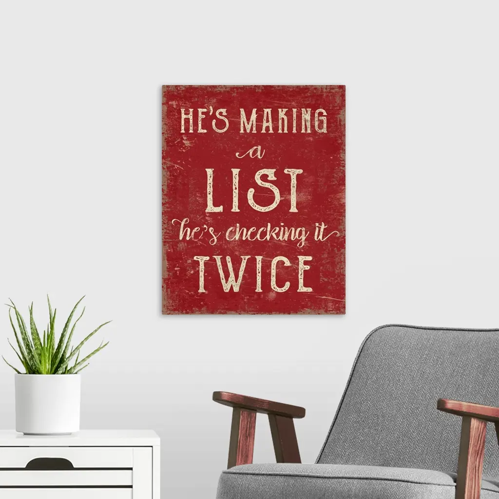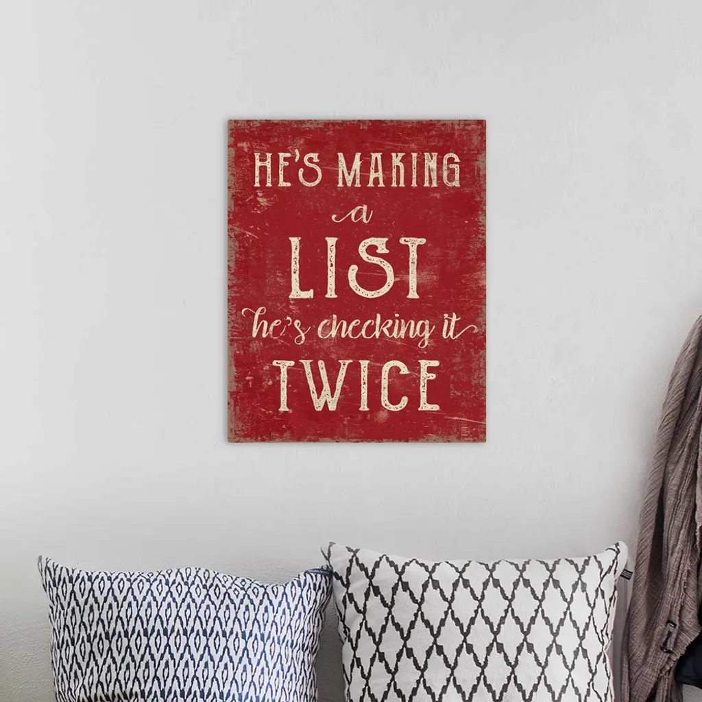 He's Making A List wall art for home and office decor. Discover canvas art prints, photos, mural, big canvas art and framed wall art in GreatBigCanvas.com's varied collections.