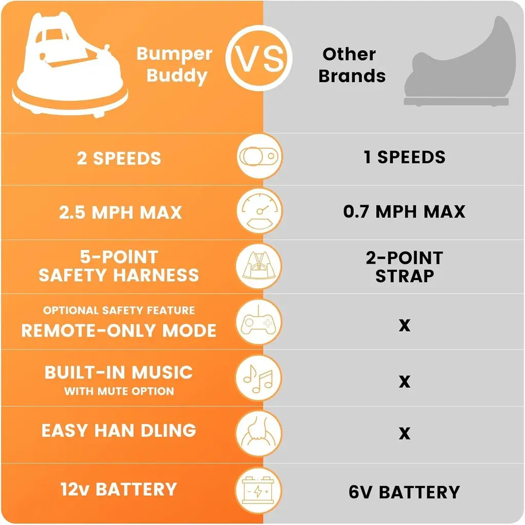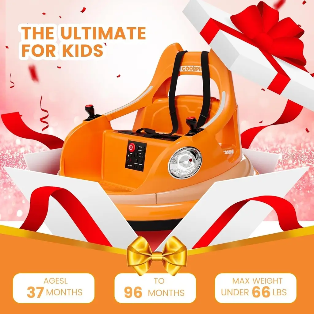 360 DEGREE SPIN - Bumper car with 360-degree spin for more smiles and greater riding fun. Ideal for toddlers and kids aged 4-8 years with a maximum weight capacity of 66 lbs. MANUAL AND REMOTE CONTROL - Let your child drive manually or use the 2.4GHz remote control to guide them when necessary; the remote has forward/reverse and turn controls LIGHTS & SOUNDS - A set of functional lights conveniently located on a seat-mounted control panel adds an extra, realistic touch to playtime! PREMIUM PERFORMANCE - Includes a rechargeable 12V battery that lets your kids enjoy 1-3 hours of riding fun. Battery charging time is about 5 hours, and 12 hrs when charging for the first time. CLASSIC DESIGN - The smooth, curved profile combined with a thick rubber-like bumper and a fun set of vibrant stickers lets your child personalize their ride.