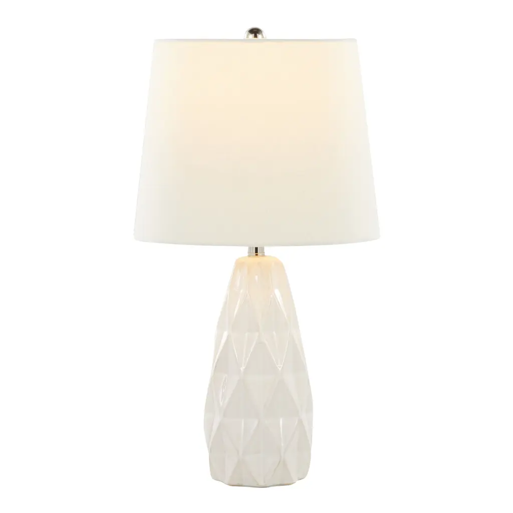 Hex 20" Ceramic Table Lamp W/ Faceted Base & Linen Shade (Set Of 2) - 20.5 - Off-White Ceramic/off-White Shade