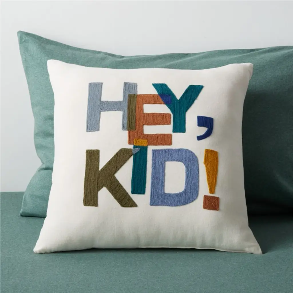 "Hey, Kid!" Embroidered Kids Throw Pillow