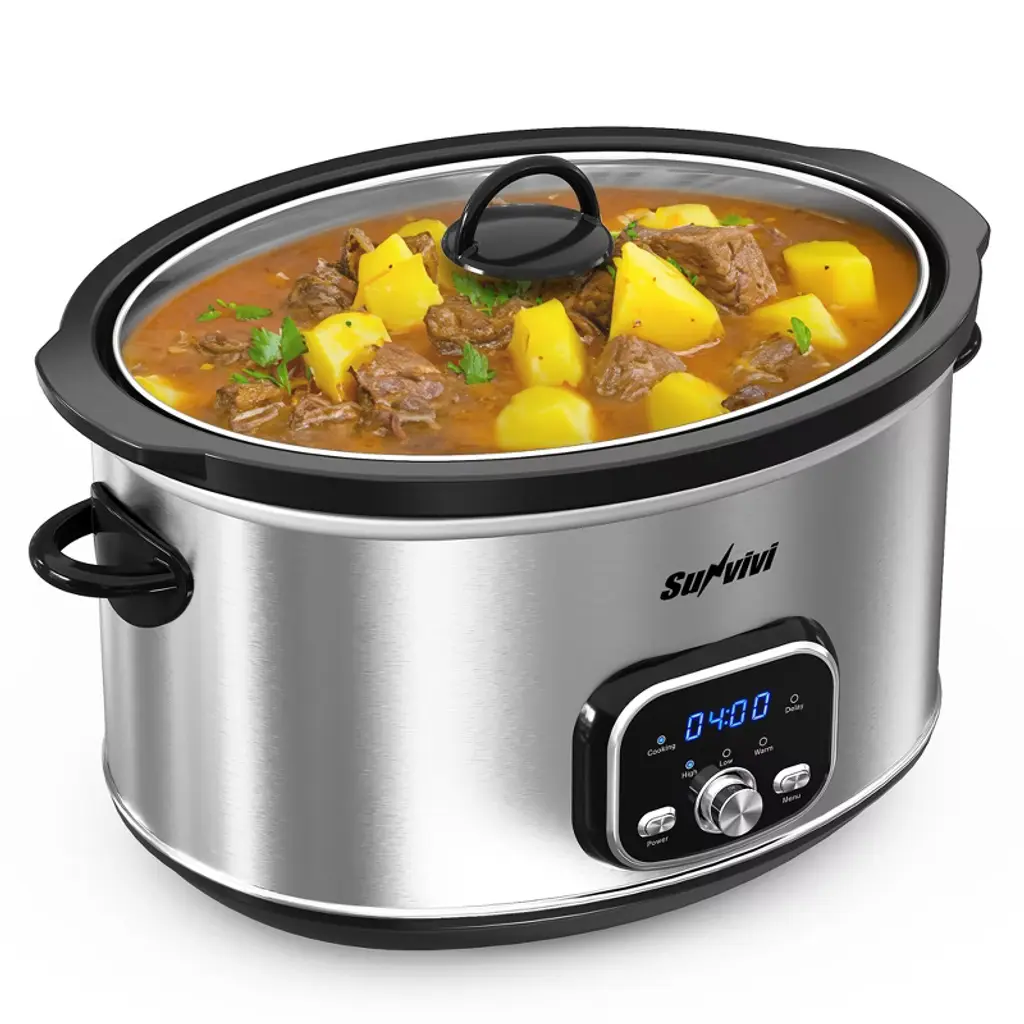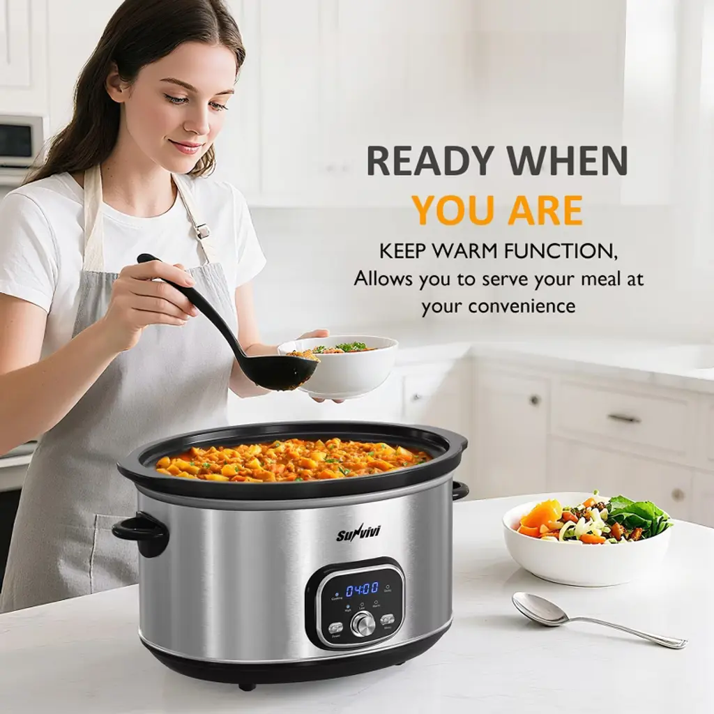 Heynemo 8.5 Quart Programmable Slow Cooker: Multi-cooker Food Warmer With Delay Function & Digital Timer, Adjustable Tempature Control, Sliver