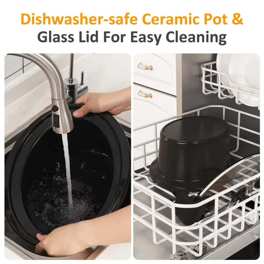 Stress-Free Cooking for Every Meal Say goodbye to crowded pots and hello to stress-free family meals with the 8.5 QT multi-cooker. Its large capacity is perfect for feeding 10+ people, whether it's a holiday feast or a weekend stew. Choose from low, high, or keep-warm settings and set the delay timer to cook while you're out. With a removable ceramic pot for easy cleaning and a simple LED control panel, this cooker adapts to your busy schedule and makes cooking effortless, bringing peace of mind to every meal. Specification Product Name: Slow Cooker Color: Silver Material: Ceramic, Stainless Steel, Glass Dimensions: 16.3"L x 12"W x 12.2"H Capacity: 8.5 QT Voltage: 120V Frequency: 60Hz Power: 380W