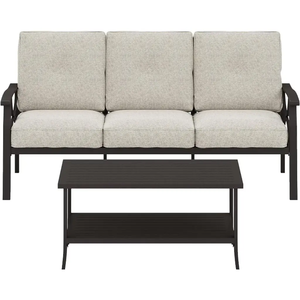 Heynemo Metal Outdoor Furniture Set, All-weather Metal Patio 3-seat Sofa With Coffee Table, Patio Sofa Set For Porch Backyard Garden, Coffee Set Of 1