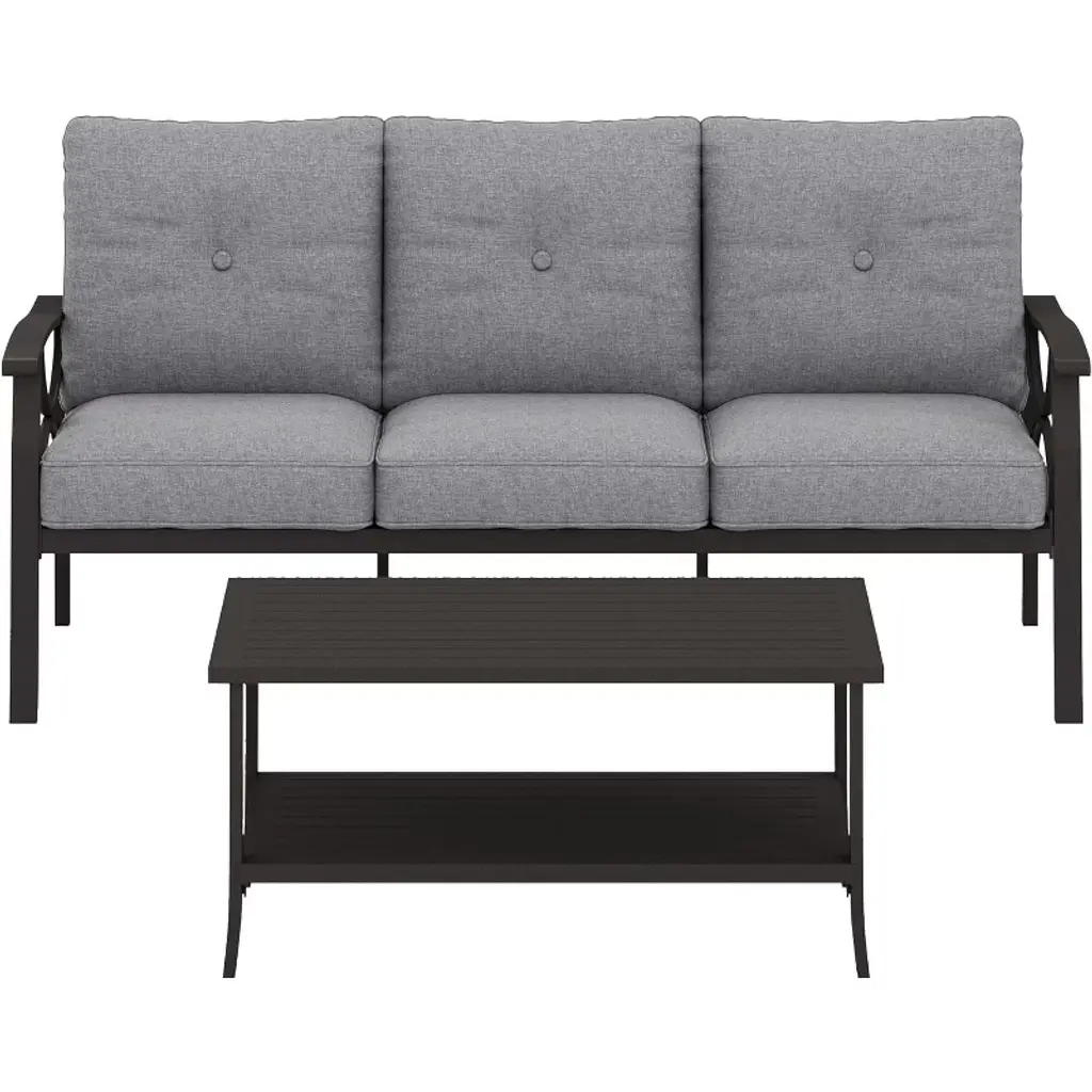 Heynemo Metal Outdoor Furniture Set, All-weather Metal Patio 3-seat Sofa With Coffee Table, Patio Sofa Set For Porch Backyard Garden, Grey Gray Set Of