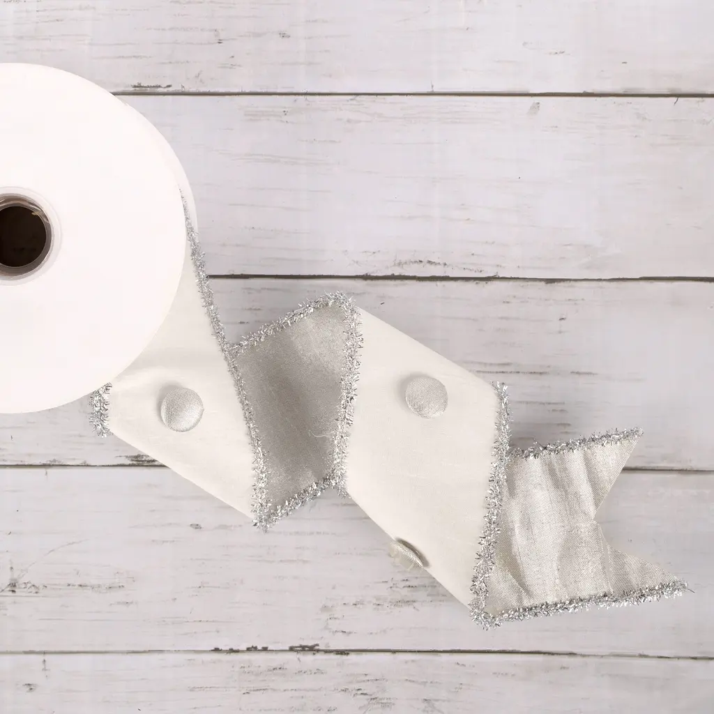 Hgtv Home Collection Metallic Buttons Double Fused Dupioni Ribbon, Ivory, 3 In - 3 In - 3 In - Ivory
