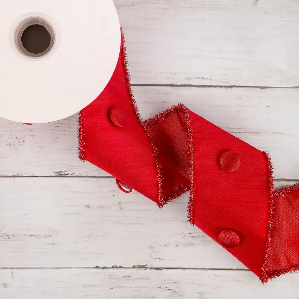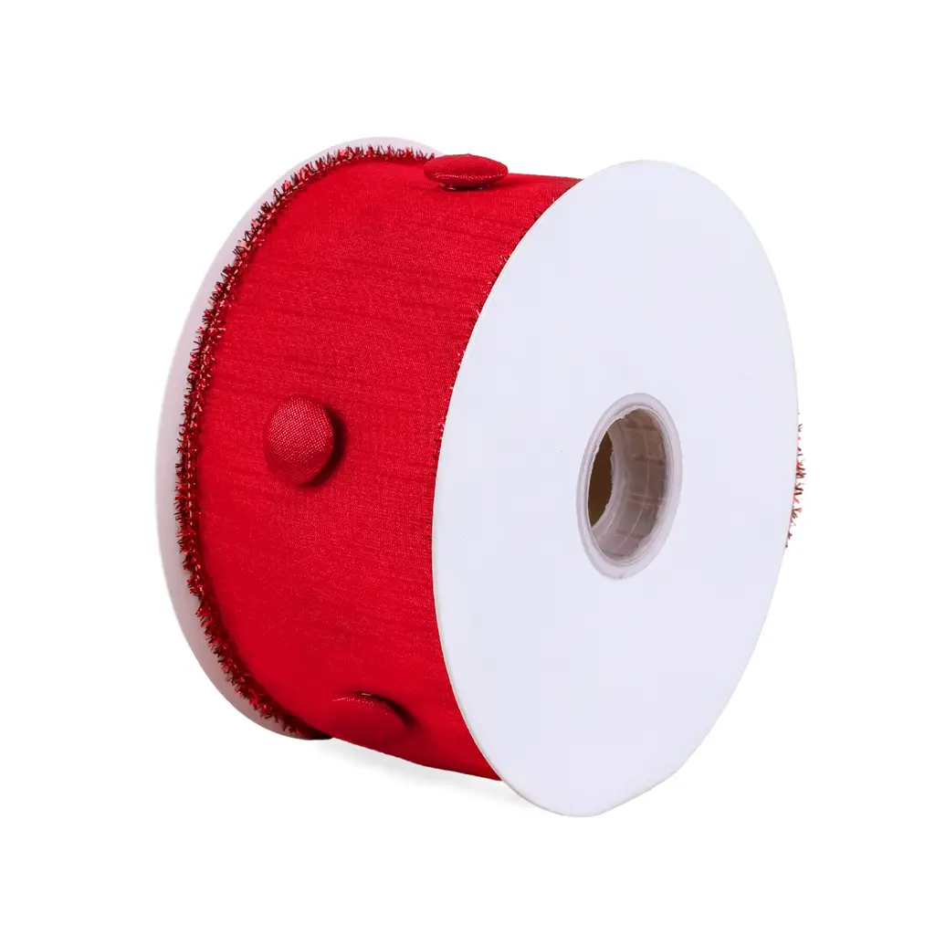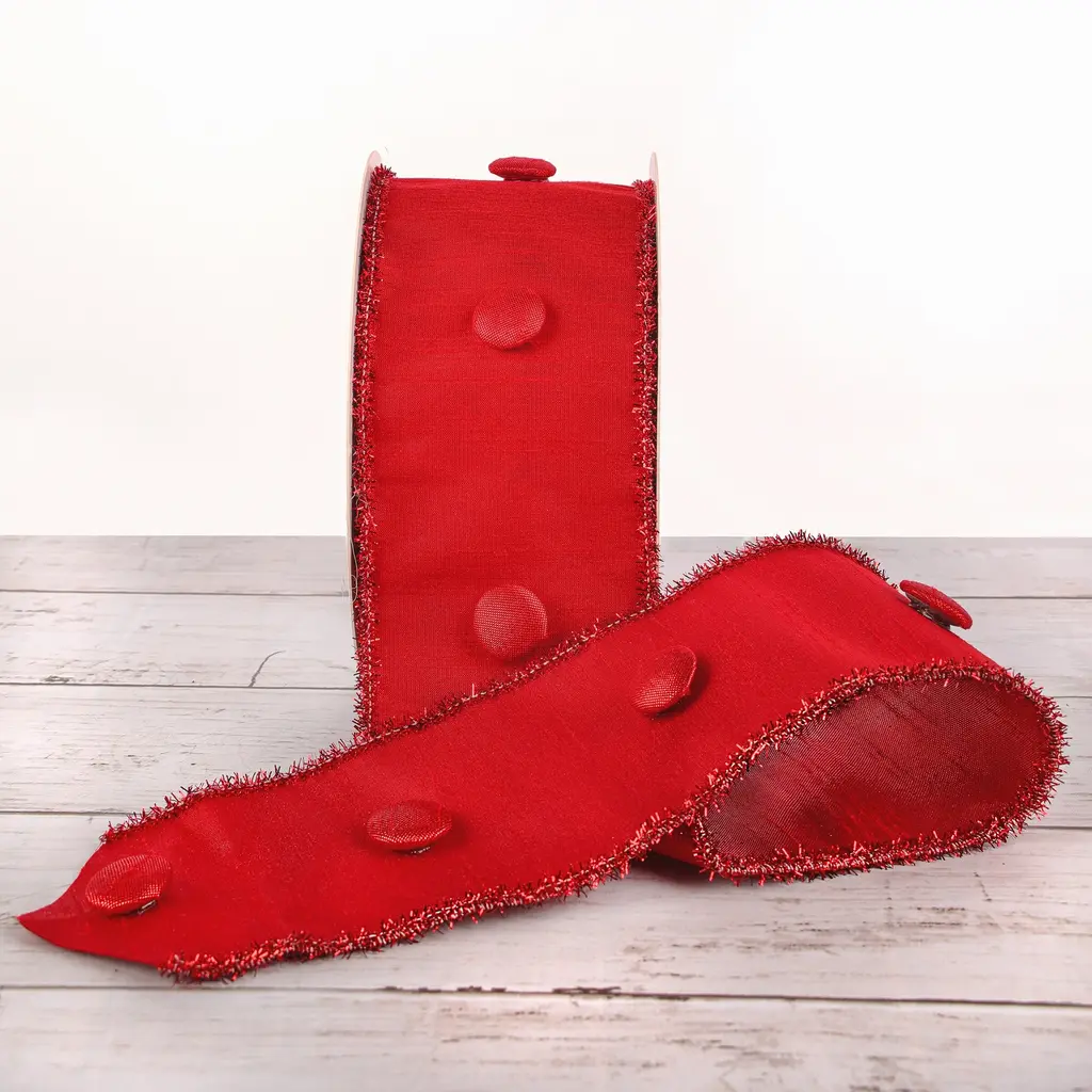 Hgtv Home Collection Metallic Buttons Double Fused Dupioni Ribbon, Red, 3 In - 3 In - 3 In - Red