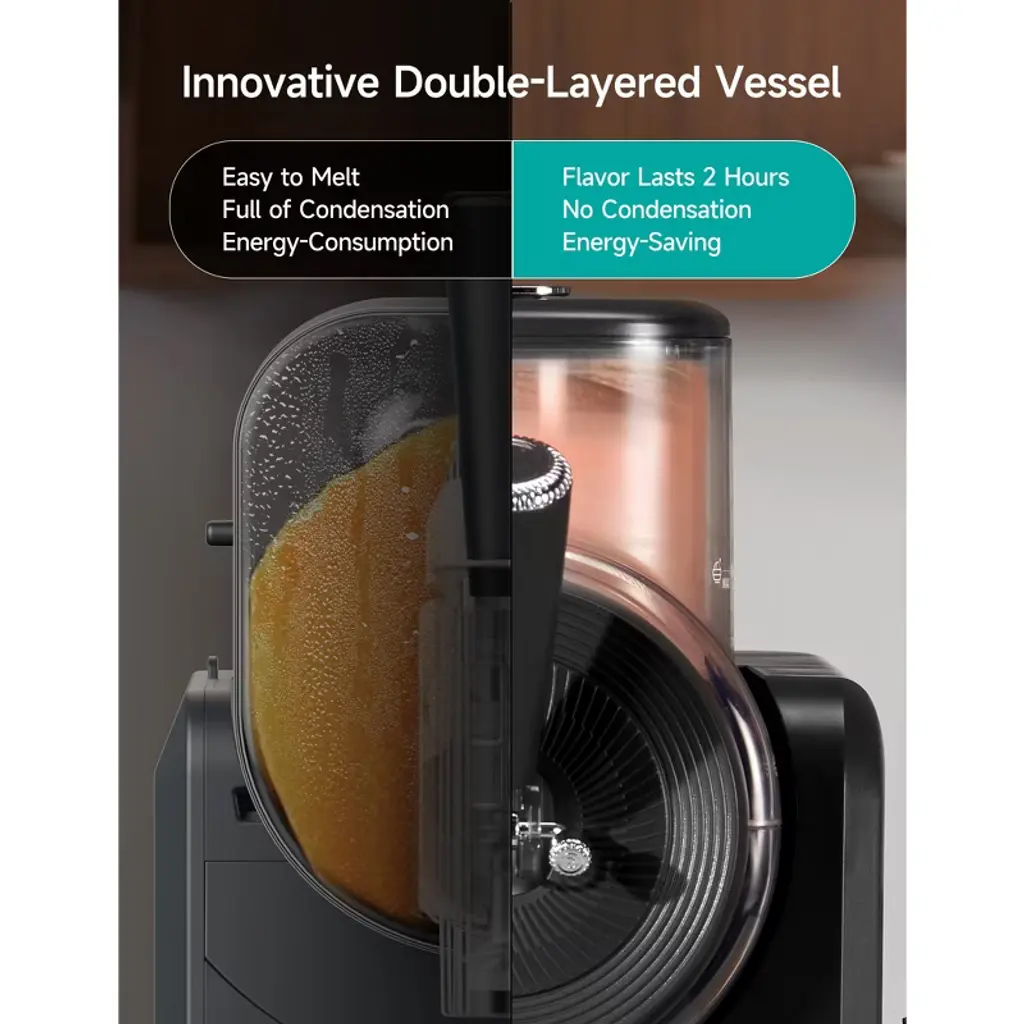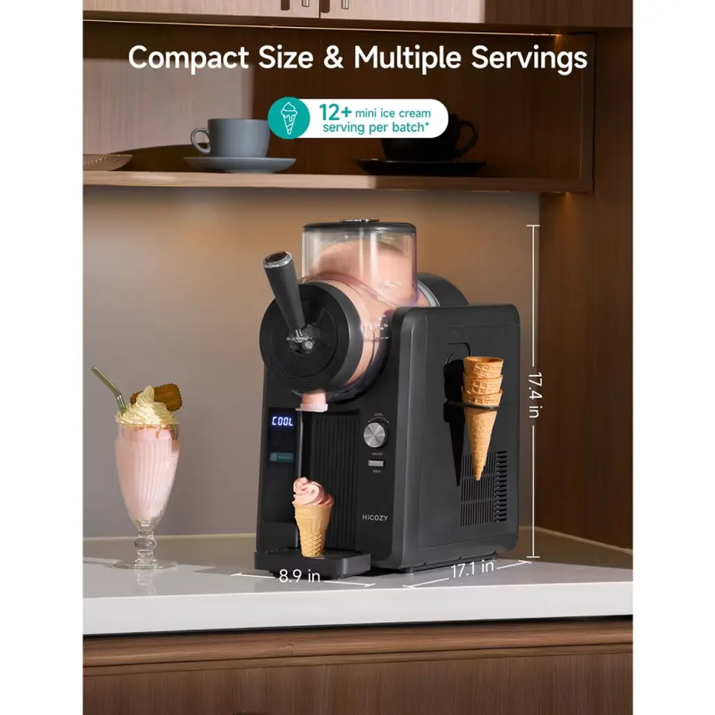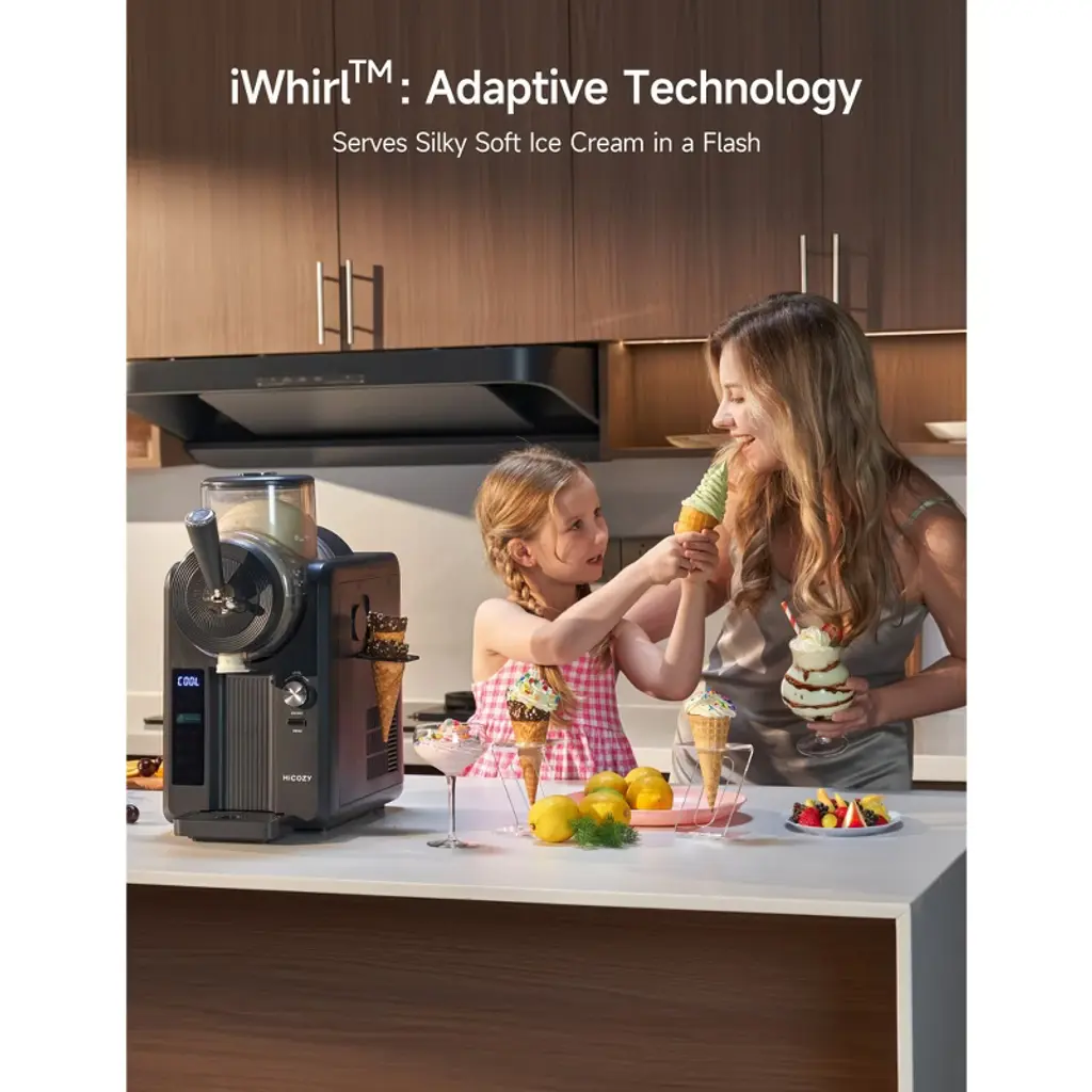 HiCOZY F3 Ice Cream & Slushie Machine combines advanced iWhirl Technology and Quicool Technology to deliver irresistibly smooth frozen treats with rich flavor and silky texture. Its variable-speed DC motor and intelligent control system automatically adjust the auger’s rotation for consistently perfect results, whether making soft ice cream or dairy-free alternatives. With five preset modes—Slushie, Soft Ice Cream, Spiked Slushie, Cold Drink, and Milk Shake—it offers versatility for any craving. The intuitive one-touch panel ensures effortless operation, while the double-layered vessel enhances flavor, prevents condensation, and improves energy efficiency. Cleaning is simple with the self-cleaning function and detachable dishwasher-safe parts, making it easy to enjoy refreshing slushies, milkshakes, and more at home.
