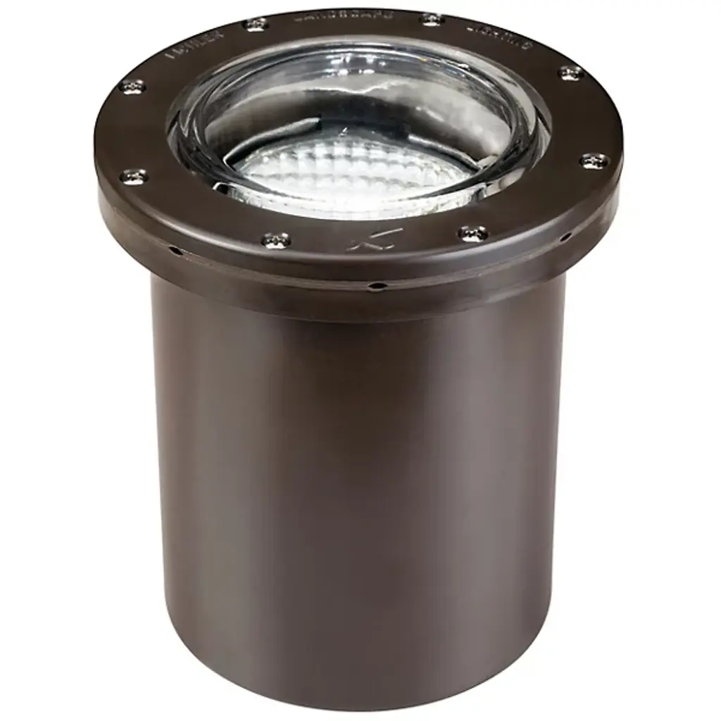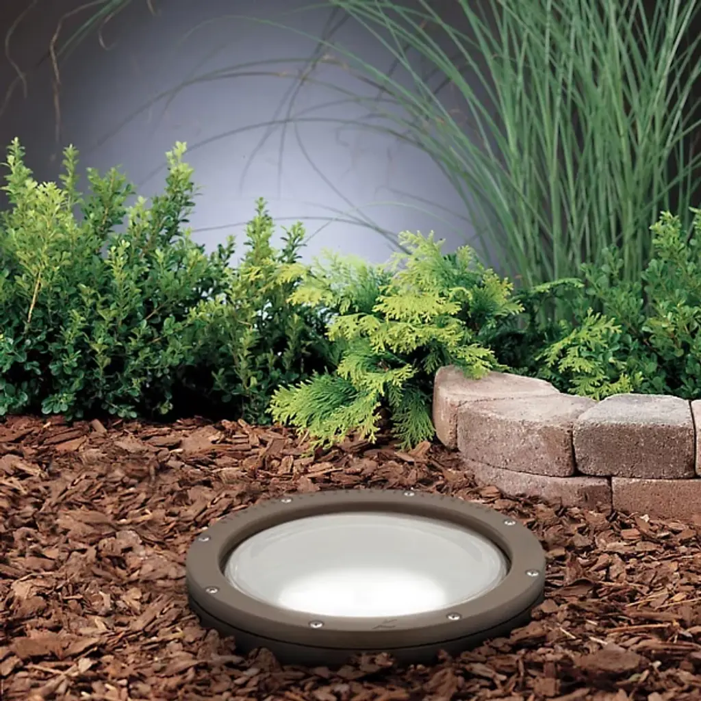 Add a welcome well of illumination to your exterior garden or patio spaces with the subtle and subdued HID High Intensity In-Ground Well Light from Kichler. A minimalist fixture fashioned from tough PPS plastic, it seats a powerful vertical lamp beneath a clear diffuser that transforms bright glare into a gentle glow. The lamp itself is adjustable through 150 degrees, providing a stylish and striking transformation to its environment.