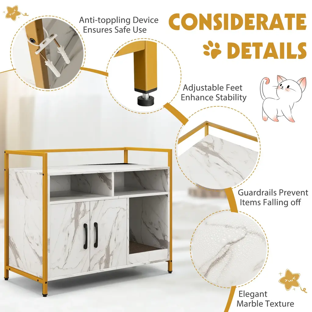 Hidden Cat Washroom With Double Doors And Scratch Cardboard - White