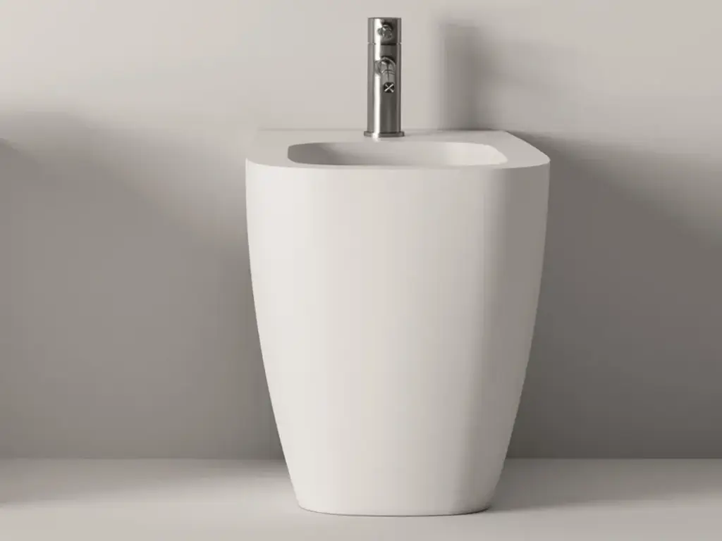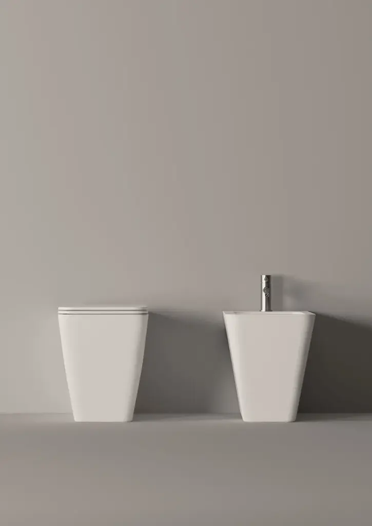 Hide Square is a floor mounted ceramic bidet with overflow.It is necessary to purchase the fixings separately (see product FIX05).One of Alice Ceramica’s most iconic collections. Steep curves and generous plans to be used in every bathrooms and for all necessities.And from today with a brand new modern touch, the practical towel holders.