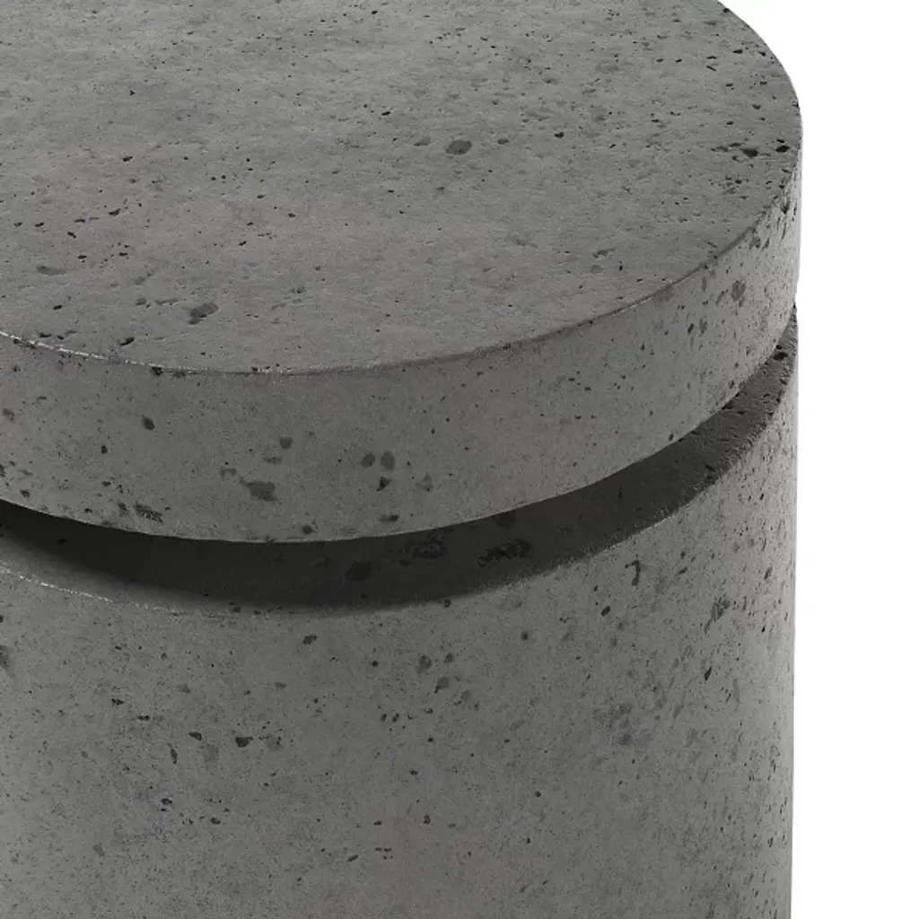 The Higgins Outdoor Round Propane Enclosure from Four Hands is composed of durable concrete for dependability. It is made in the USA. Your propane enclosure takes on a cylindrical shape with a slit formation, bringing a contemporary sense of style to your space, adding a hint of industrial design influence.