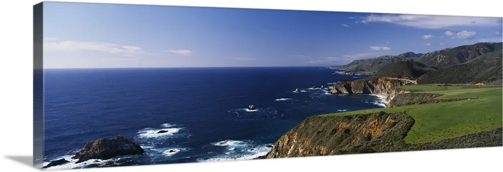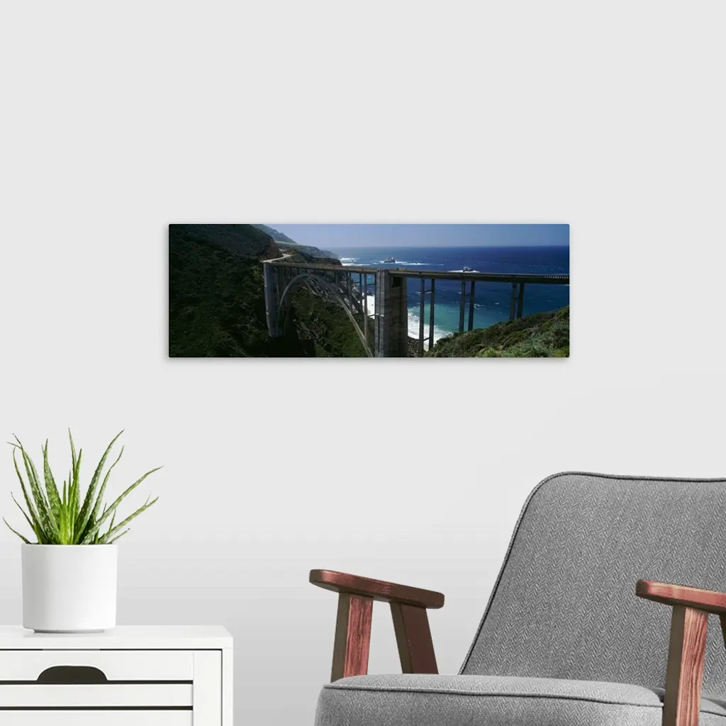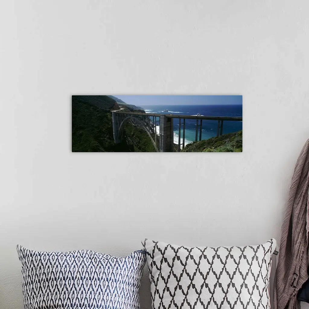 High angle view of a bridge, Bixby Bridge, Big Sur, California wall art for home and office decor. Discover canvas art prints, photos, mural, big canvas art and framed wall art in GreatBigCanvas.com's varied collections.