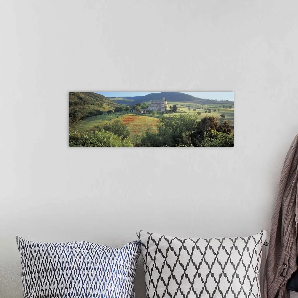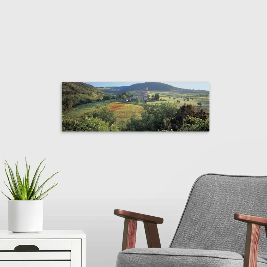 High angle view of a church, Abbazia Di Sant Antimo, Tuscany, Italy wall art for home and office decor. Discover canvas art prints, photos, mural, big canvas art and framed wall art in GreatBigCanvas.com's varied collections.