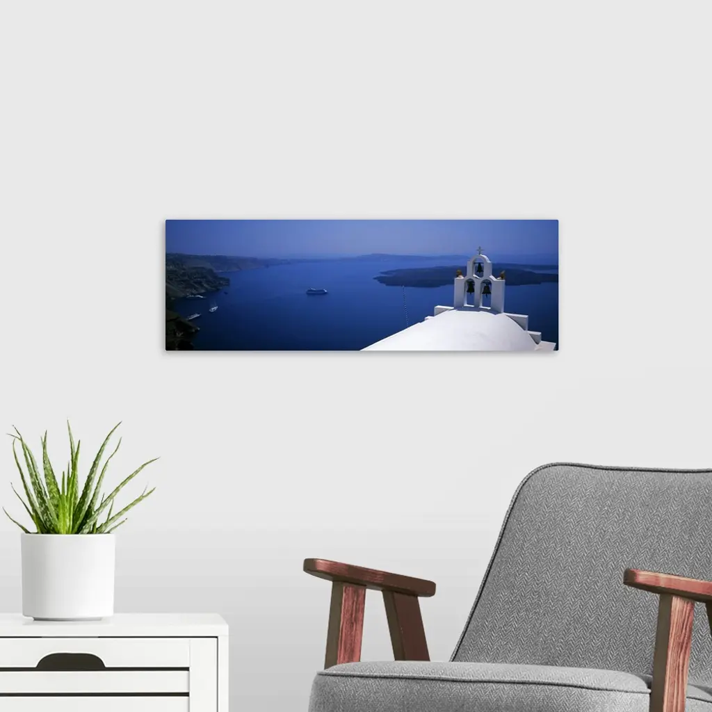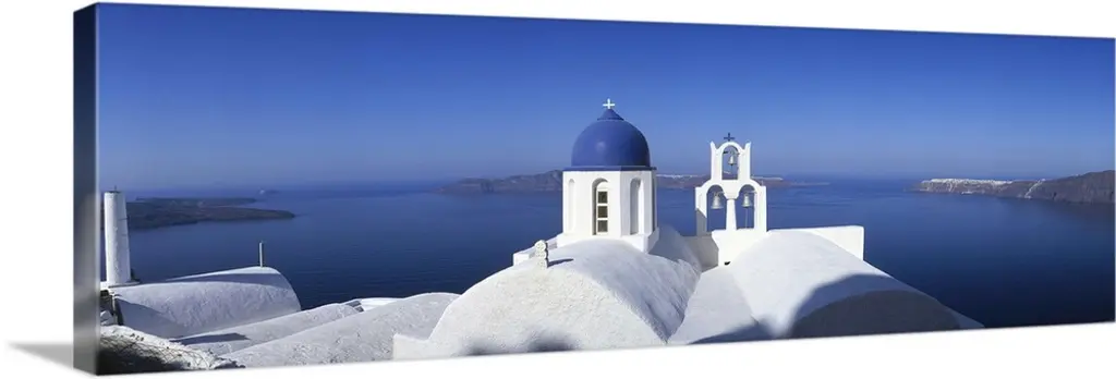 High angle view of a church, Imerovigli Village, Santorini, Greece wall art for home and office decor. Discover canvas art prints, photos, mural, big canvas art and framed wall art in GreatBigCanvas.com's varied collections.