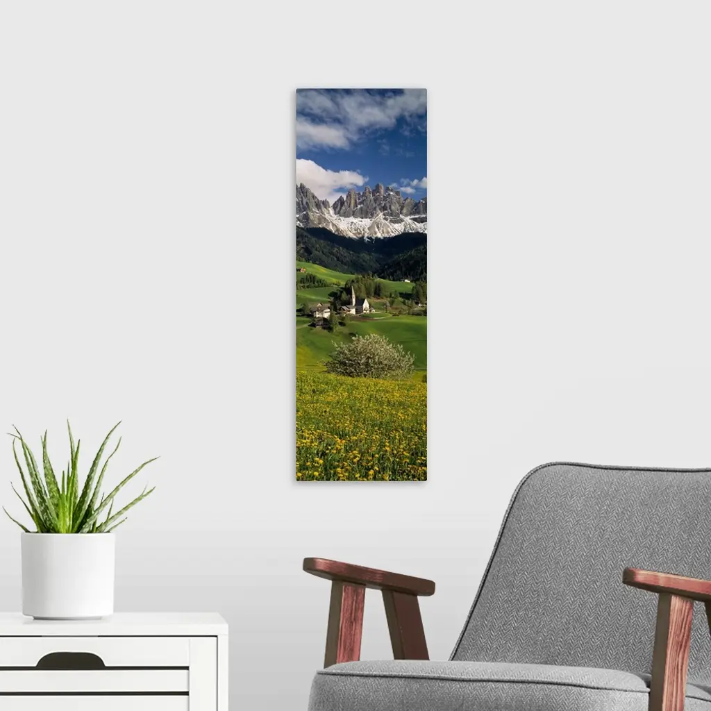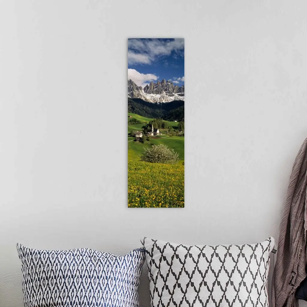 High angle view of a church on the rolling landscape, Amalfi, Amalfi Coast, Salerno, Campania, Italy wall art for home and office decor. Discover canvas art prints, photos, mural, big canvas art and framed wall art in GreatBigCanvas.com's varied collections.