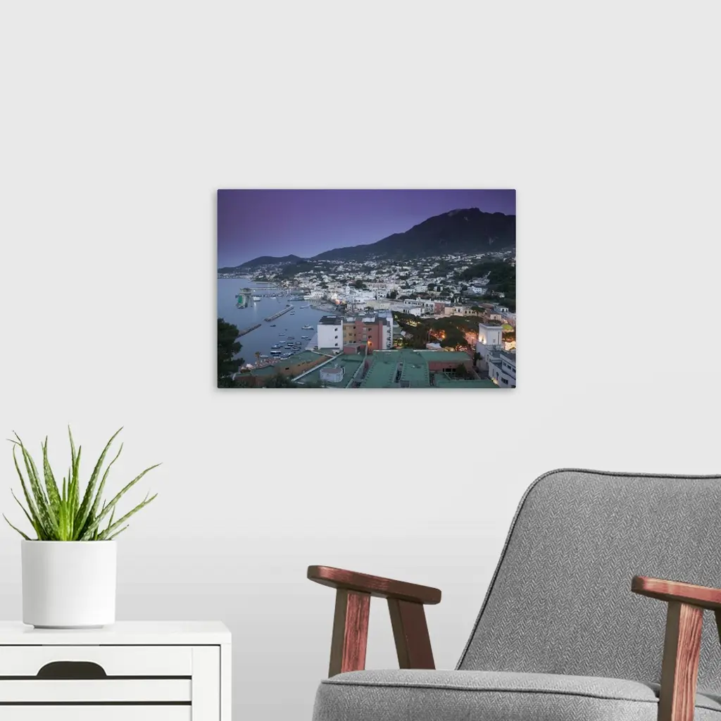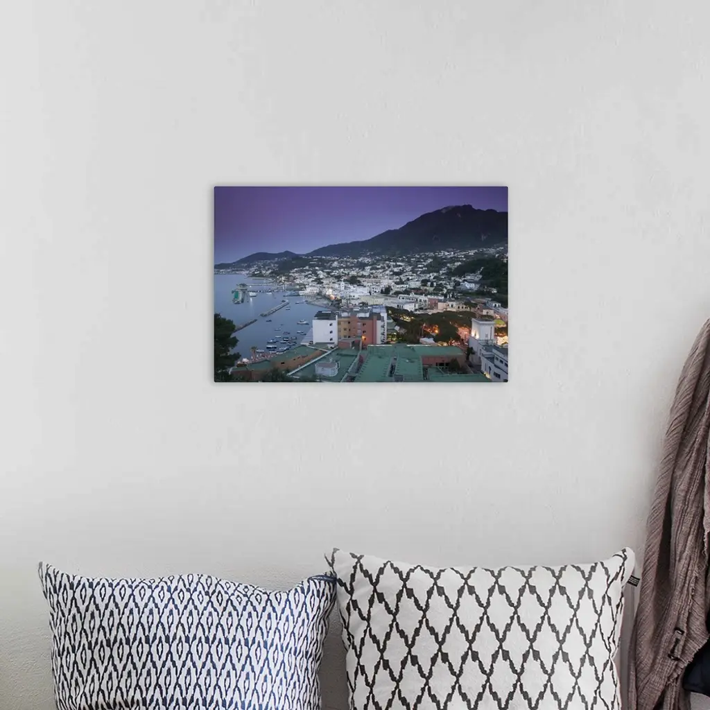 High angle view of a city, Lacco Ameno, Ischia, Naples, Campania, Italy wall art for home and office decor. Discover canvas art prints, photos, mural, big canvas art and framed wall art in GreatBigCanvas.com's varied collections.