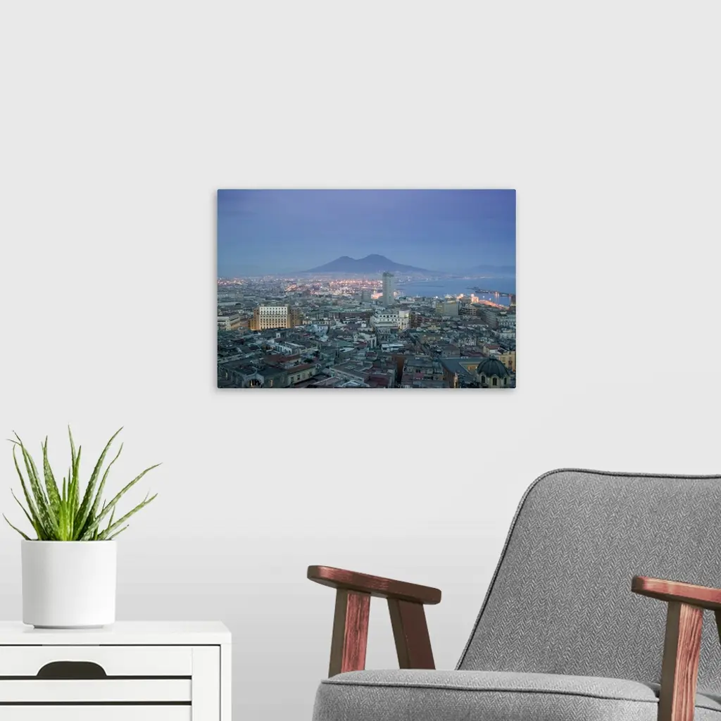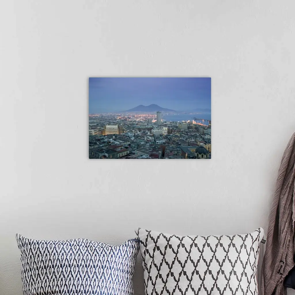 High angle view of a city, Mt Vesuvius, Naples, Campania, Italy wall art for home and office decor. Discover canvas art prints, photos, mural, big canvas art and framed wall art in GreatBigCanvas.com's varied collections.