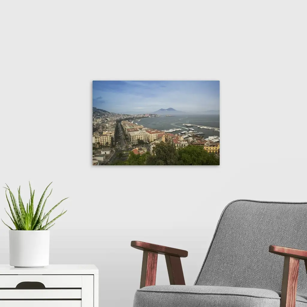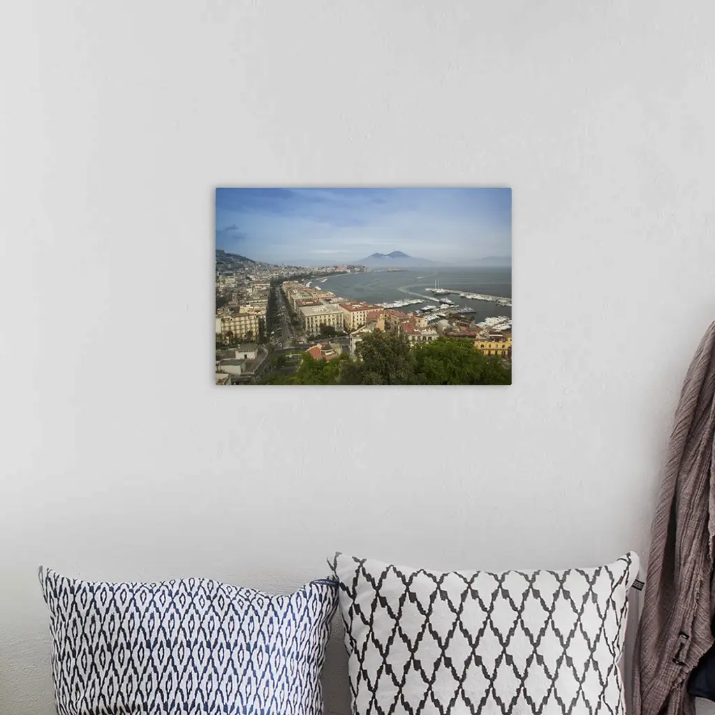 High angle view of a city, Naples, Campania, Italy wall art for home and office decor. Discover canvas art prints, photos, mural, big canvas art and framed wall art in GreatBigCanvas.com's varied collections.