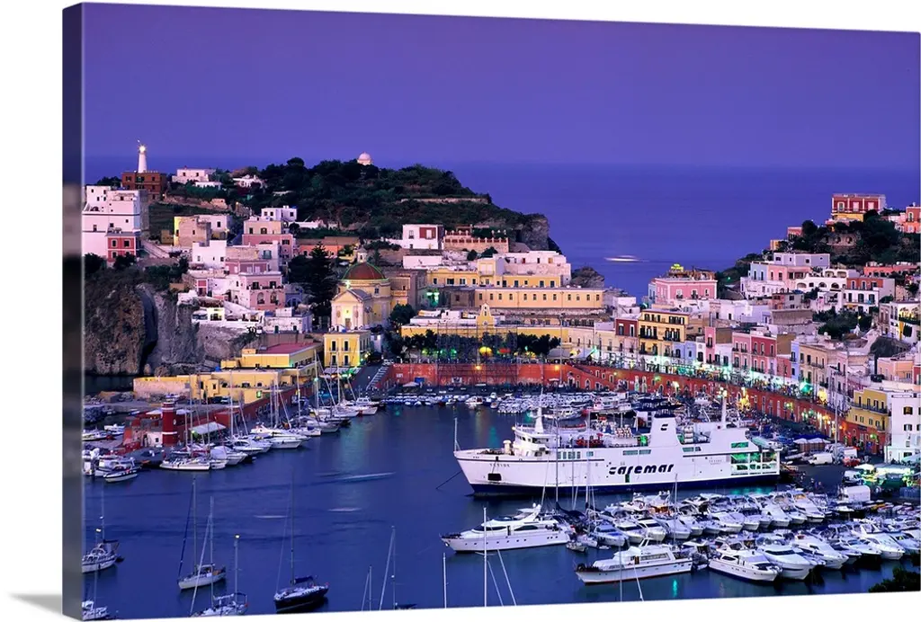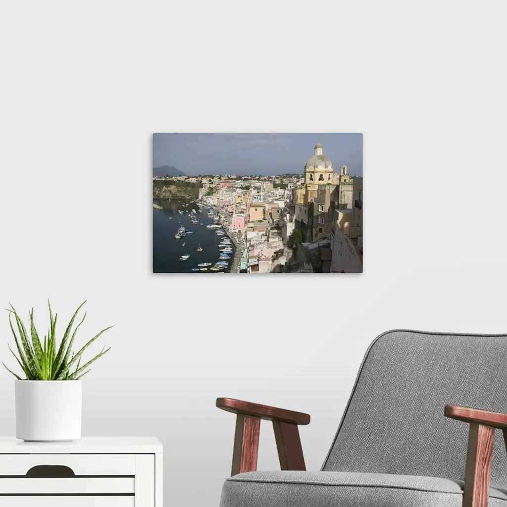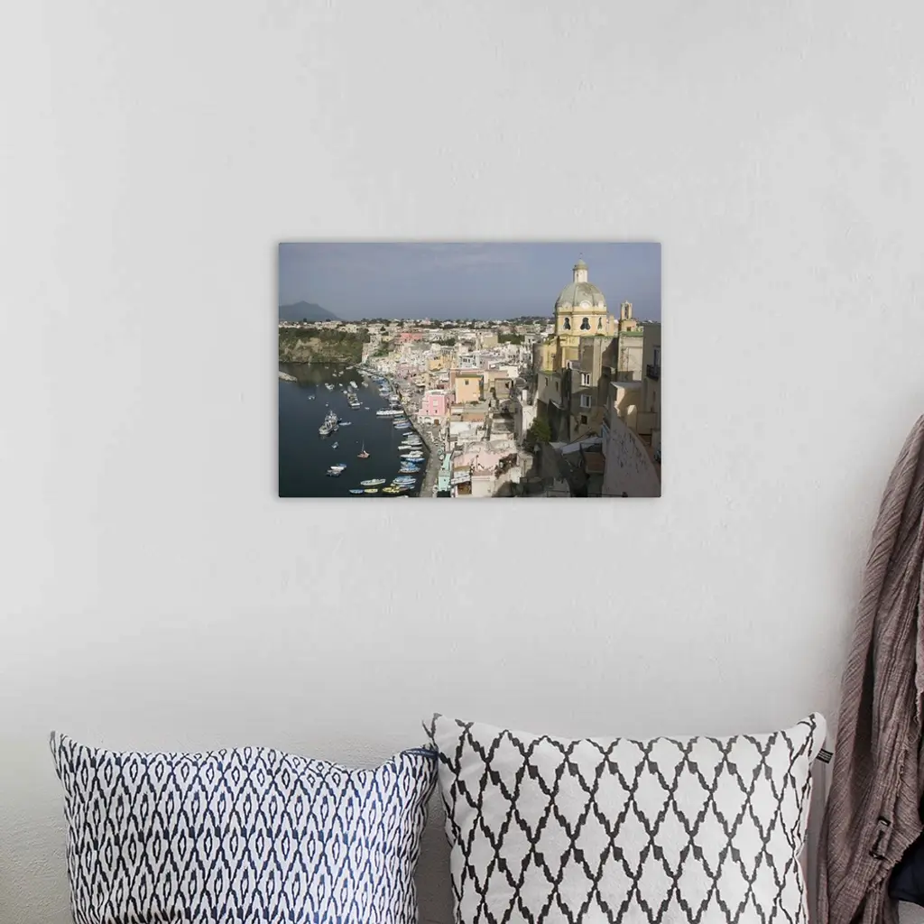 High angle view of a city, Procida, Naples, Campania, Italy wall art for home and office decor. Discover canvas art prints, photos, mural, big canvas art and framed wall art in GreatBigCanvas.com's varied collections.