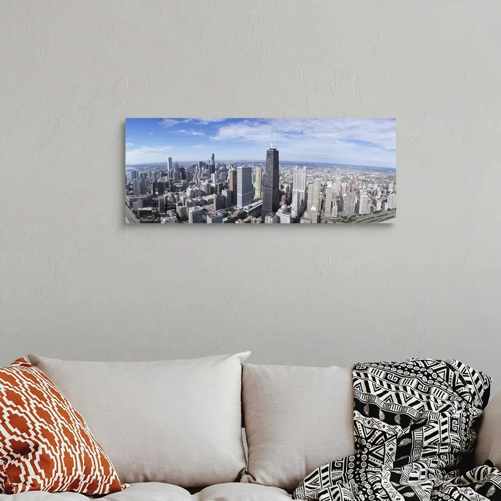 High angle view of a city, Sears Tower, Chicago, Illinois wall art for home and office decor. Discover canvas art prints, photos, mural, big canvas art and framed wall art in GreatBigCanvas.com's varied collections.