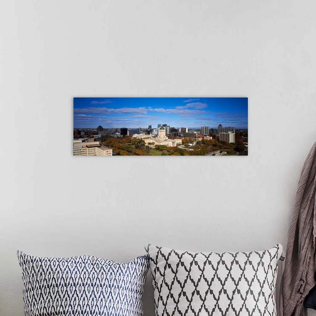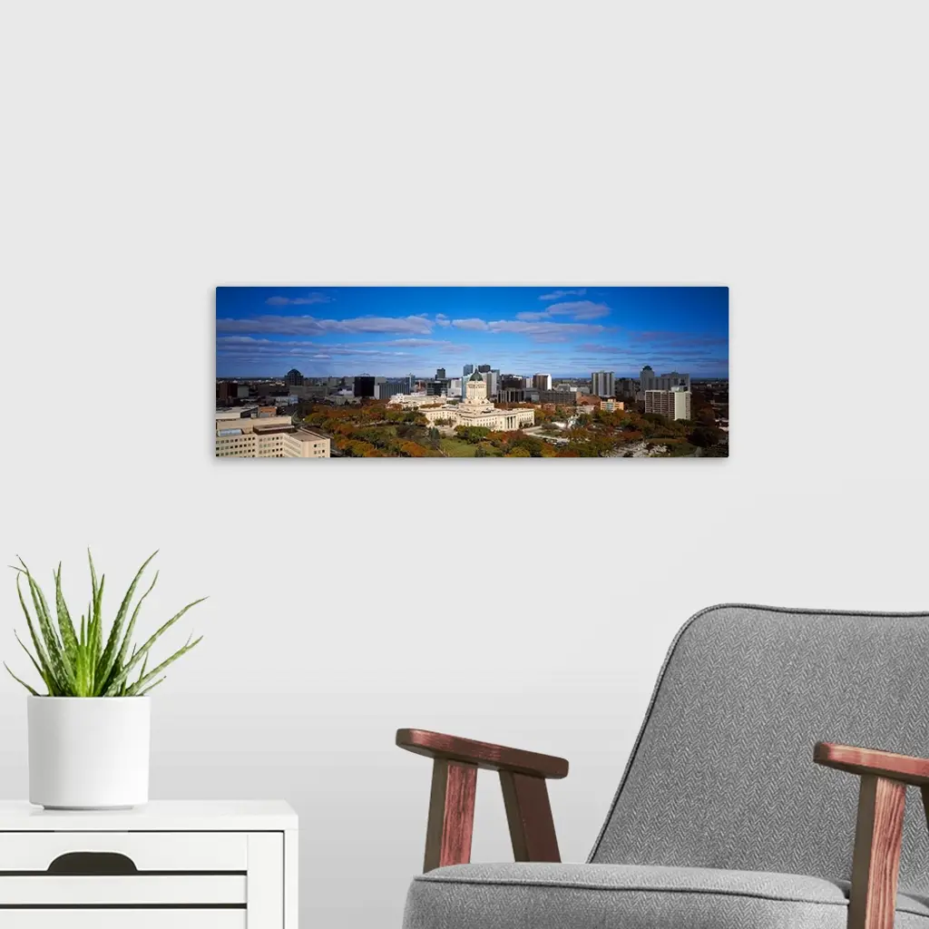 High angle view of a city, Winnipeg, Manitoba, Canada wall art for home and office decor. Discover canvas art prints, photos, mural, big canvas art and framed wall art in GreatBigCanvas.com's varied collections.