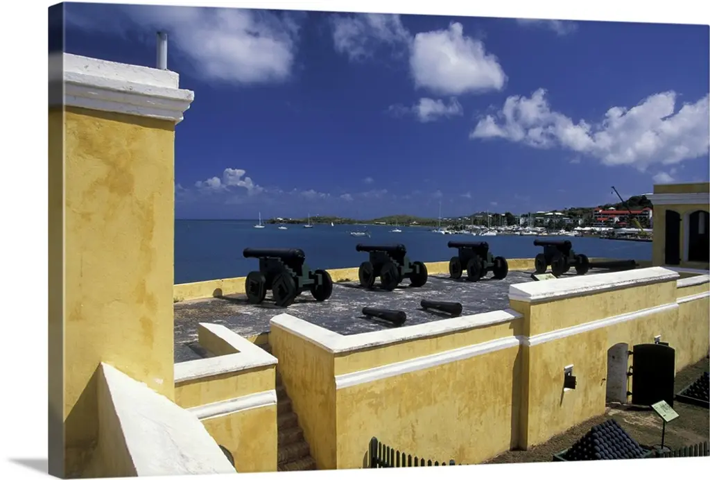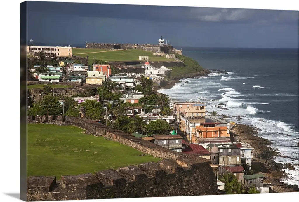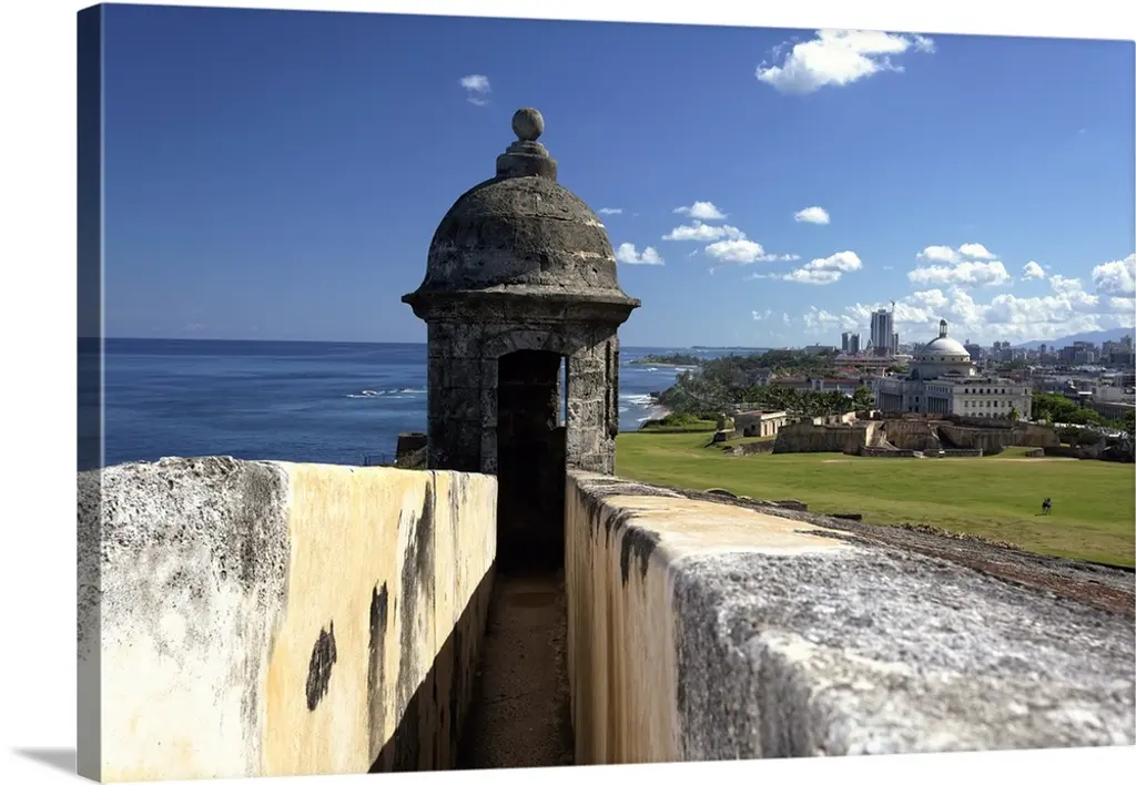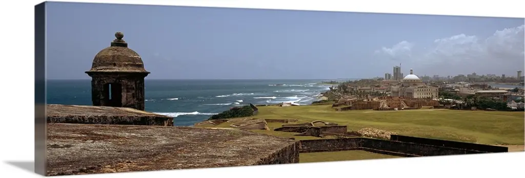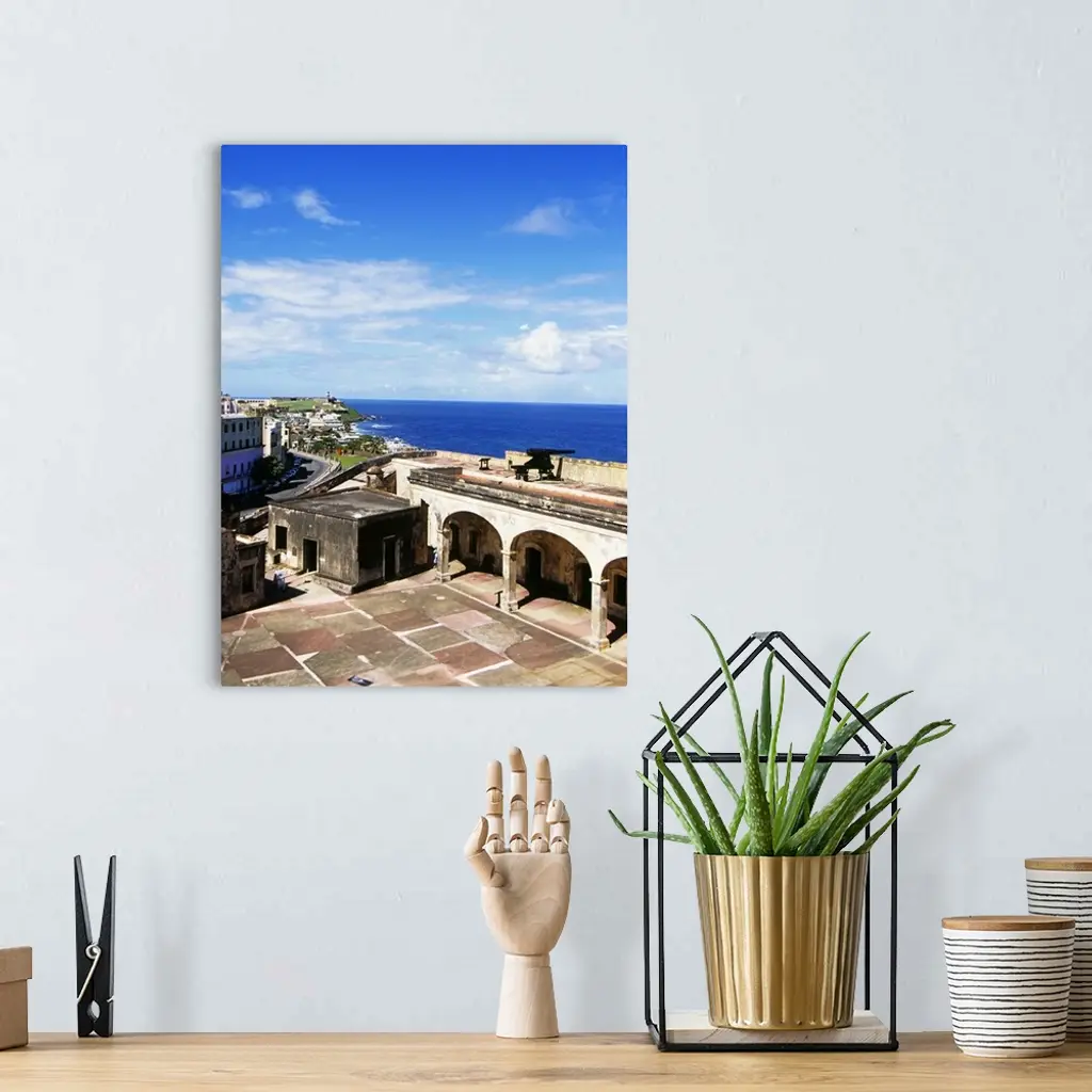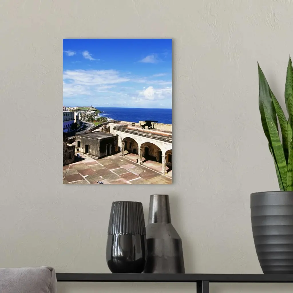 High angle view of a courtyard at a castle, Castillo De San Cristobal, Old San Juan, San Juan, Puerto Rico wall art for home and office decor. Discover canvas art prints, photos, mural, big canvas art and framed wall art in GreatBigCanvas.com's varied collections.